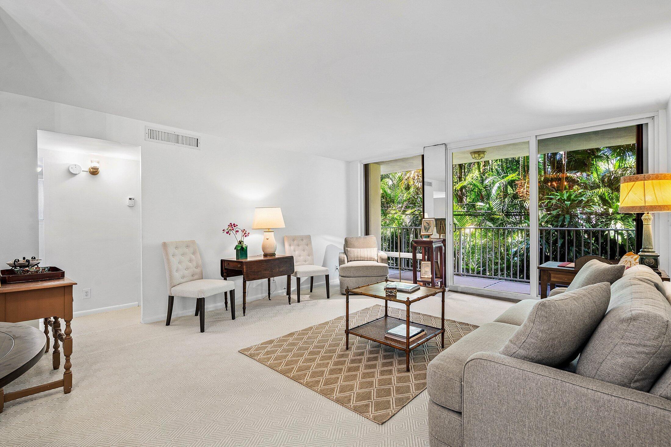 Ideally located, this in-town boutique building is situated midblock between the Atlantic Ocean and Lake Trail. Spacious 2-bedroom, 2-bathroom condominium with split floor plan and open layout. Recently updated in 2025 with new carpet and fresh paint. Corner residence features an expansive wraparound balcony in a private, quiet setting with tropical garden views for outdoor entertaining. Fully furnished for turnkey living. 223 Atlantic Ave provides covered parking, strong financials, no assessments and very low HOA dues. No wait period to lease (limit 2X/year). Updates to lobby and hallways in nearly complete. Short distance to everything Palm Beach has to offer including fine dining, premier shopping and pristine beach.