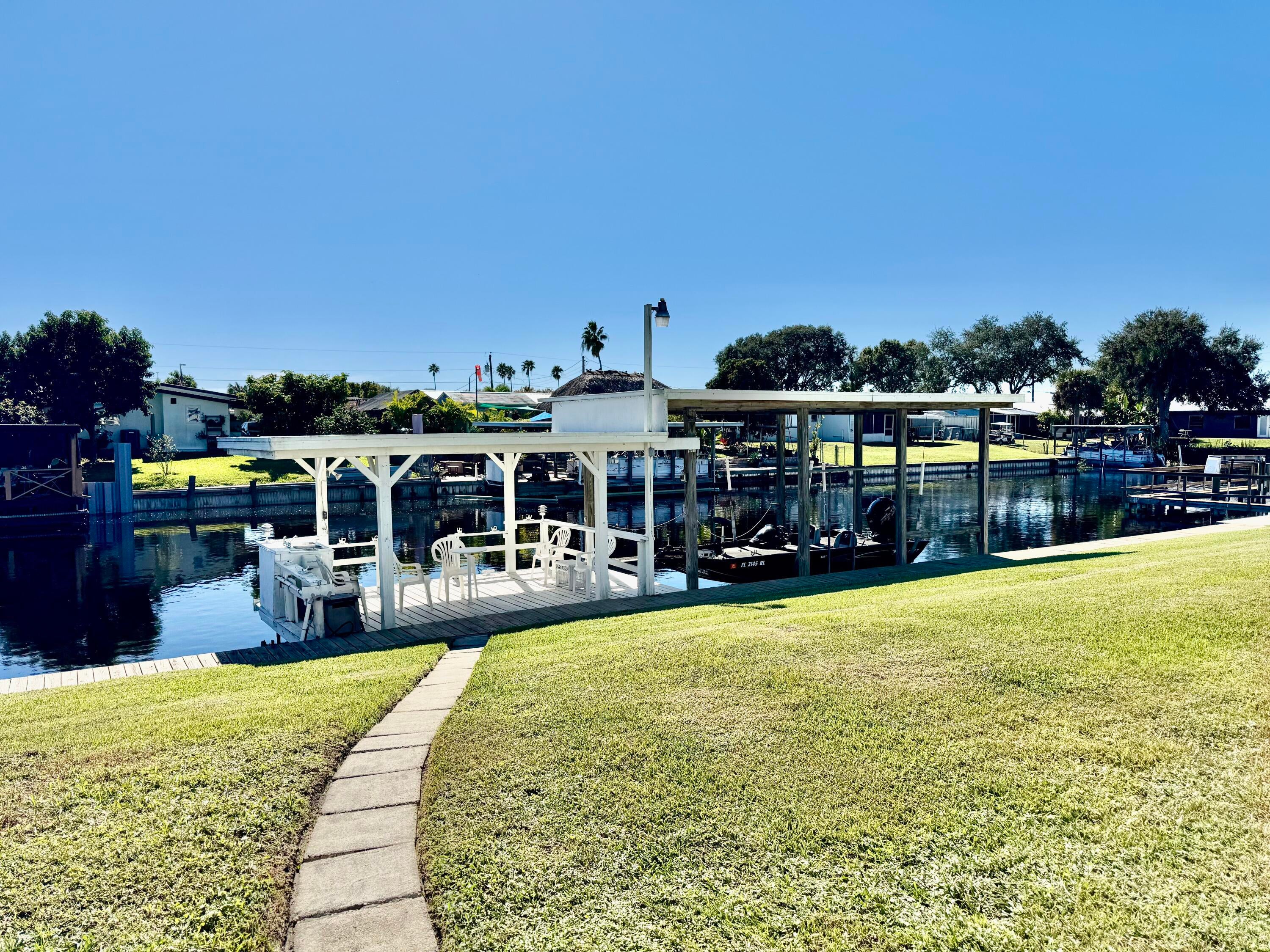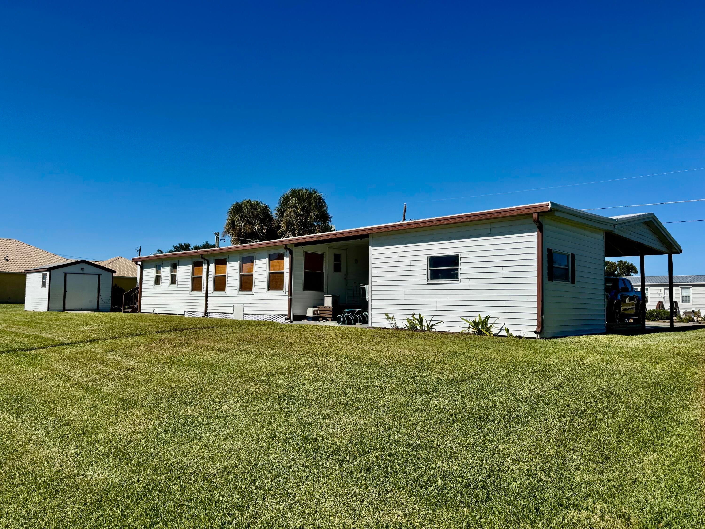 TAYLOR CREEK ISLES~ Lake ''O'' access! Beautiful, polished curb appeal! 3 Bd, office (4th Bd/ craft room) 2 Ba - DWMH w/ 12x24 Florida room w/ faux fireplace. Split plan, open concept. New LVP flooring, interior paint and ceiling fans/ lights. Vaulted 22x24 DOUBLE CARPORT, breezeway seating, 16x12 Workshop and shed. Two driveways. 45' concrete drive for RV with hookup. So many possibilities! Seawall, 12x18 party dock and 12x24 covered boat parking with lift. A HONEY of a FISHERMAN'S DREAM! Dimensions are approximate, must measure for exact.