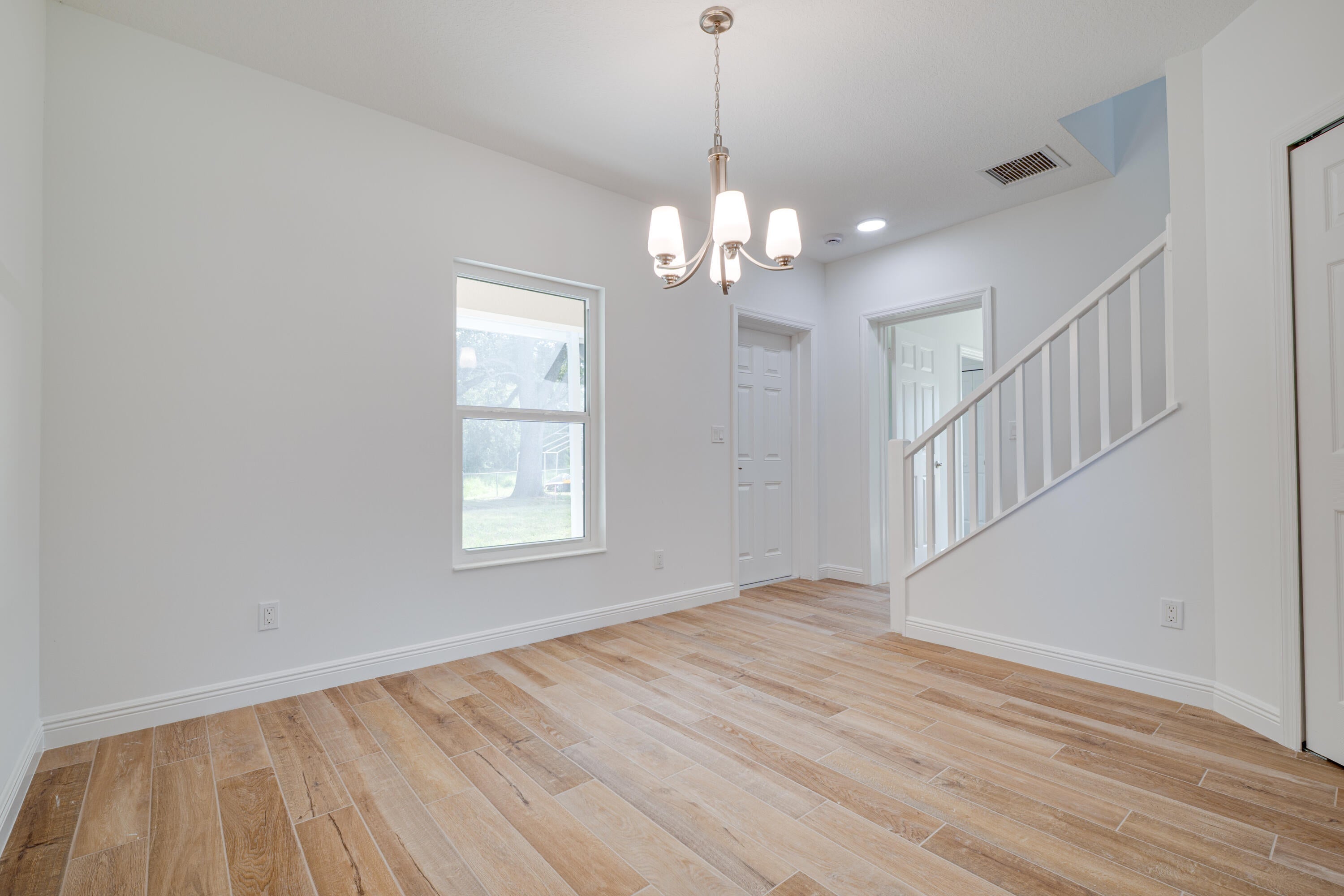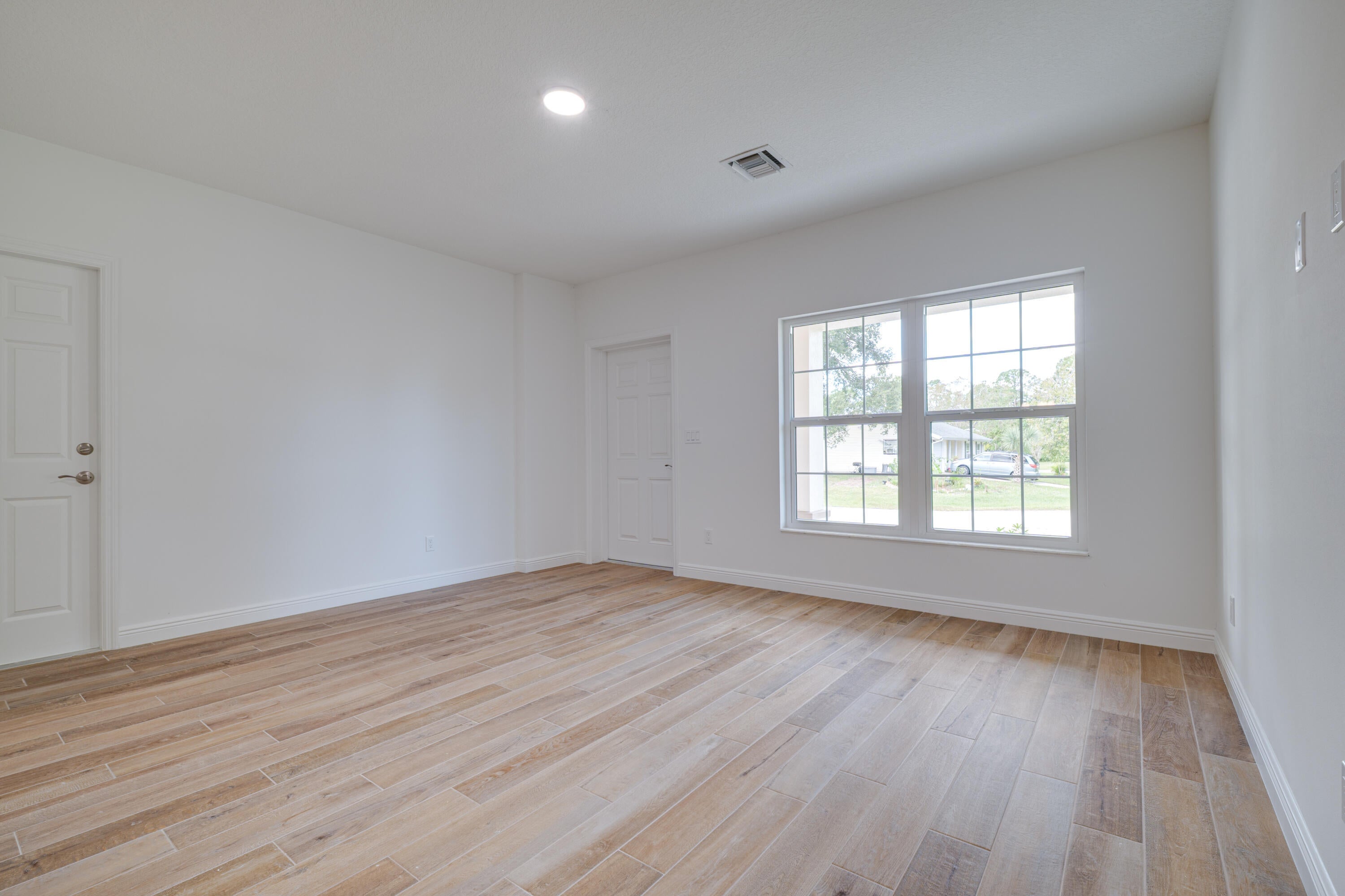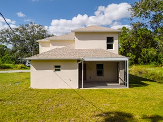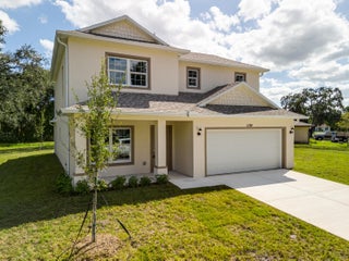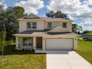 New construction with meaningful upgrades: CBS on BOTH floors, impact windows, city water, and an oversized lot. The primary suite is on the first floor with a soaking tub & walk-in shower offering relaxing amenities and convenience. Upstairs, you'll find exceptionally large bedrooms (rare in Florida new construction). Features include wood-plank tile, a welcoming front porch, and a covered + screened back porch for true Florida living. Located in one of Palm Bay's fastest-growing areas, close to parks, schools, and daily essentials. Solid construction, smart layout; come see it in person.