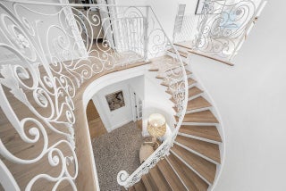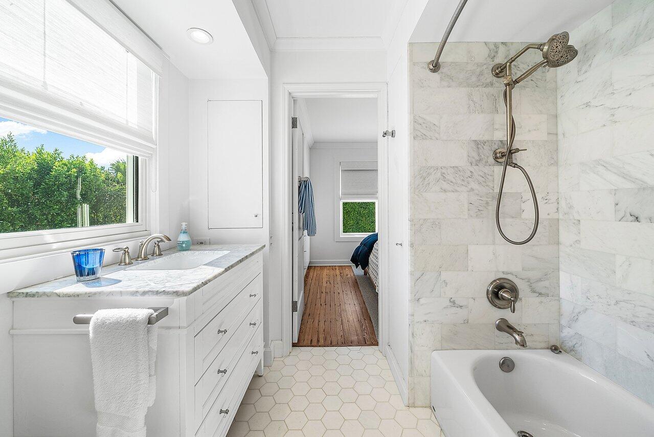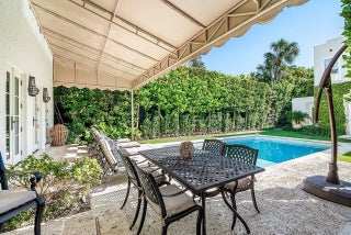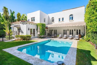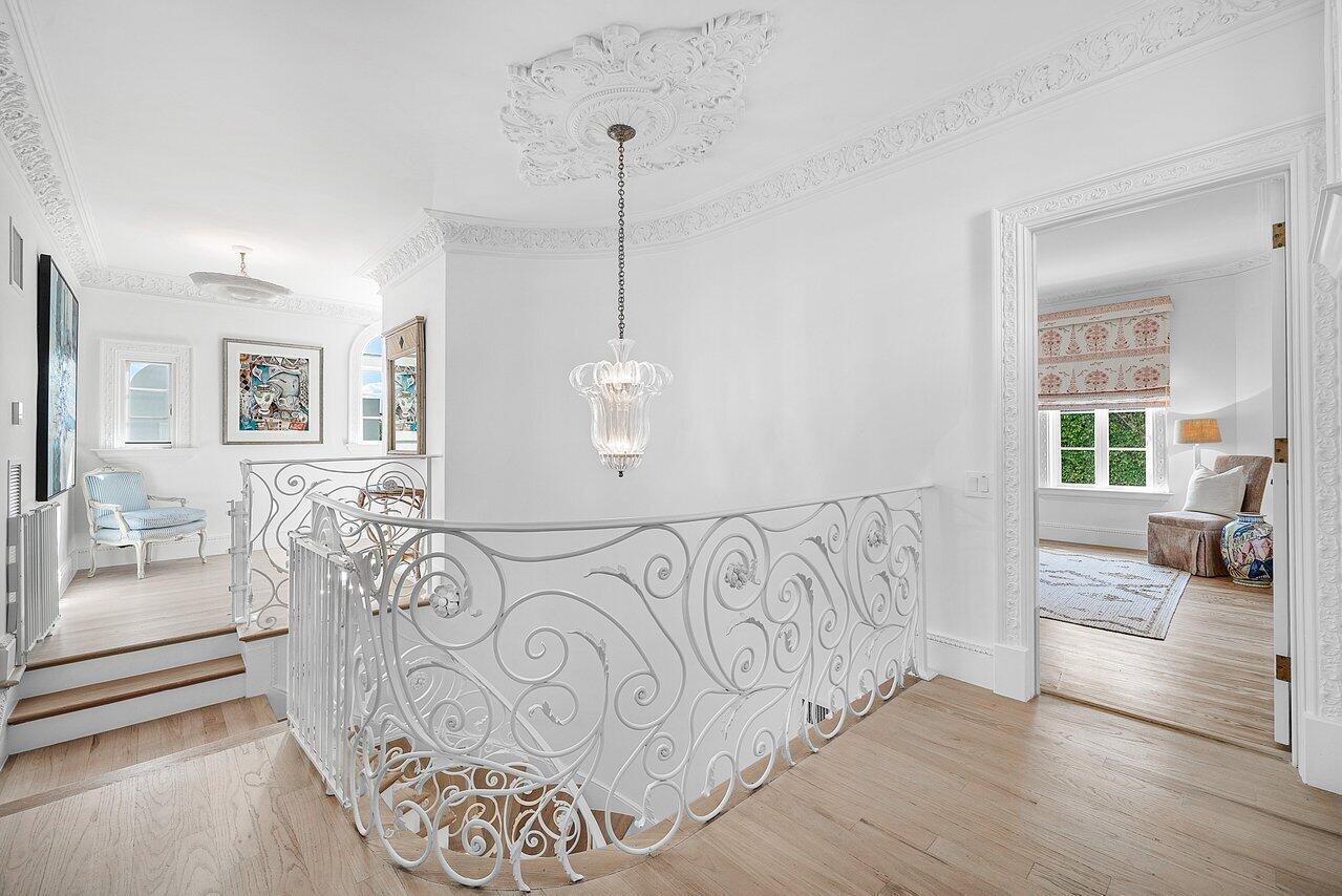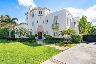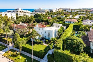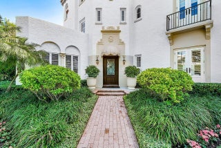 Stunning ocean block estate blending timeless architecture with modern luxury on pristine Brazilian Avenue in the heart of town. Sited on a 12,825 sq ft lot, this renovated Mediterranean Revival estate rises 3 stories and includes a 4-bedroom, 4.5-bath main residence and a beautifully appointed 2-bedroom/2 bath guest house. Filled with natural light and exquisite details, the home features a double living room with fireplace, 10' ceilings, formal dining room, library, and inviting family room. Chef's kitchen with Lacanche range, marble counters, custom island and built ins. French doors throughout lead to a covered coquina stone patio and heated salt water pool. Primary suite with marble fireplace, walk-in closet and elegant bath. 3 additional en-suite bedrooms, light oak wood floorselevator, full impact doors and windows, curving staircases and exquisite moldings further enhance the home. The stylish guest house has a full kitchen/living area, breakfast room with custom banquette, 2 bedrooms/ 2 full baths and attaches to the garage with an exercise area/gym, laundry room, and half bath. The rear outdoor oasis is secured by an electric gate and is lushly landscaped and walled in for complete privacy. There are 2 electric car charging stations and outdoor shower. This in town compound is move-in ready and not to be missed!