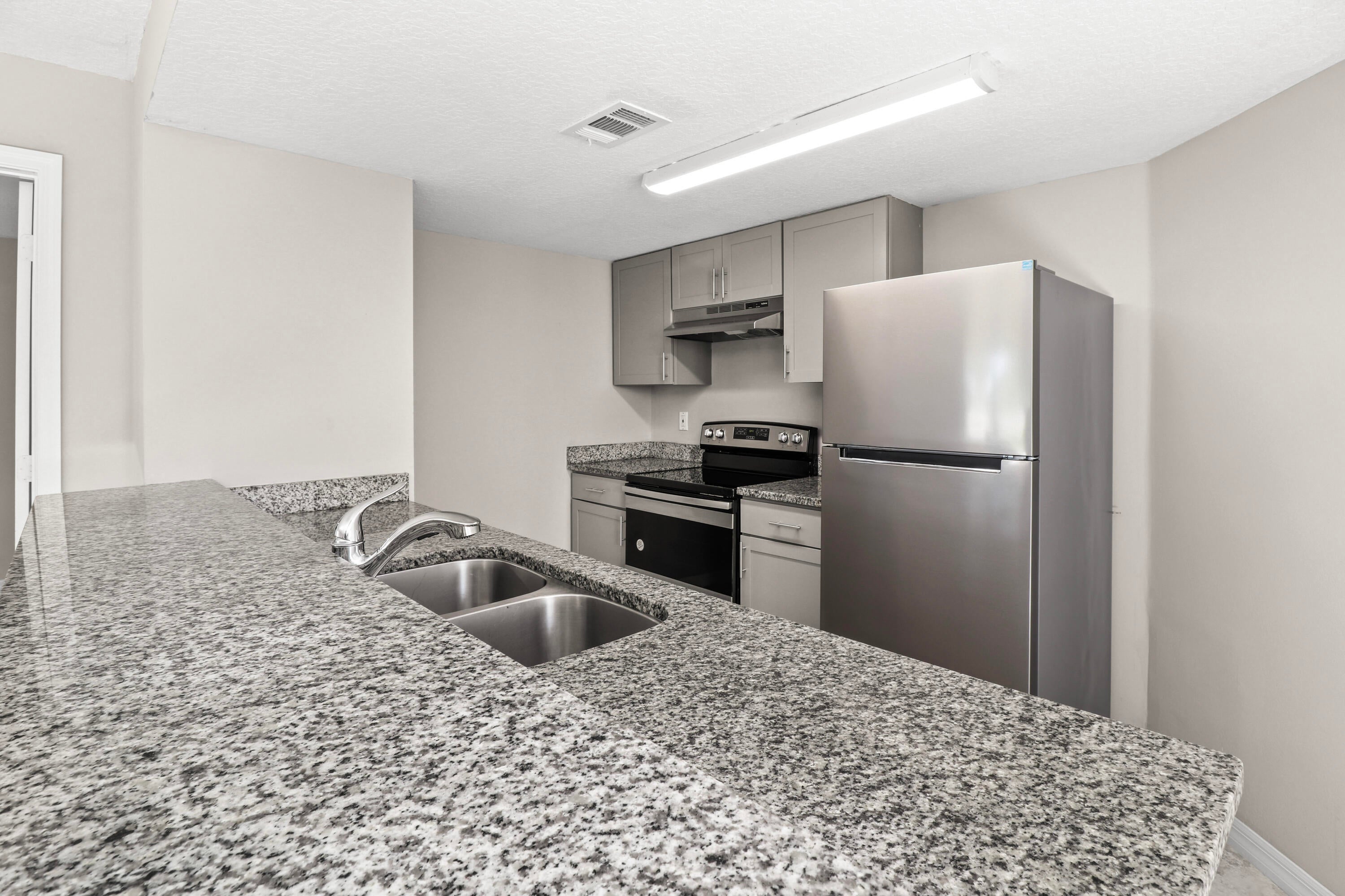 Welcome home to Green Oaks Place! This beautifully remodeled first-floor residence offers 2 bedrooms and 2 en-suite bathrooms, a dedicated laundry room with washer/dryer hookups, and a peaceful screened-in patio. The open-concept kitchen features brand-new appliances, upgraded cabinetry, and granite countertops, complemented by tile flooring throughout for a clean, cohesive feel. Each bedroom includes its own fully updated private bathroom, and the home comes equipped with newer high-efficiency A/C units, refreshed landscaping, and a dedicated covered parking space. This quiet, well-maintained community is located in southern Fort Pierce just off US-1, and is minutes from shopping, dining, and the impeccable Florida beaches. Call for your tour today!
