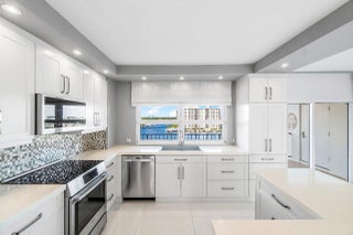 Searching for a property with amazing views and walkable to downtown? Water views from every window in this remodeled condo featuring porcelain floors throughout, impact windows, remodeled kitchen with an island and wine fridge, new refrigerator, new stove and new washer dryer inside the unit. Primary bedroom has incredible views, large walk in closet and primary bath has dual sinks plus a separate makeup area. Two huge balconies with north and south facing views up and down the waterway. Milestone and SIRS complete! First-come-first-serve boat slip dockage accommodating vessels up to 50 feet, along with a storage space & bicycle storage. Over 55 Building