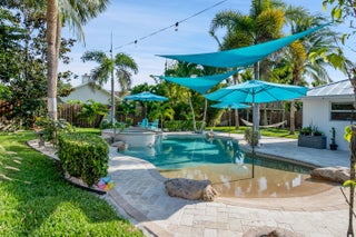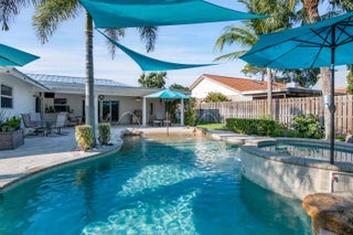 Turnkey and updated, this stunning home features a 2024 standing seam metal roof with 10-year transferable warranty, full impact windows and doors, remodeled baths, vaulted ceilings, crown molding, and a granite kitchen that opens to a tropical paradise. Enjoy a saltwater beach-entry pool, spa, misters, jets, and marble pavers. Inside offers split bedrooms, a large laundry room, two cabana baths, plantation shutters, and a double-door entry. Set on a low-traffic street with a fully fenced yard and sunny south exposure. Zoned for Addison Mizner, Boca Middle, and Boca High. Resort-style living at its best.