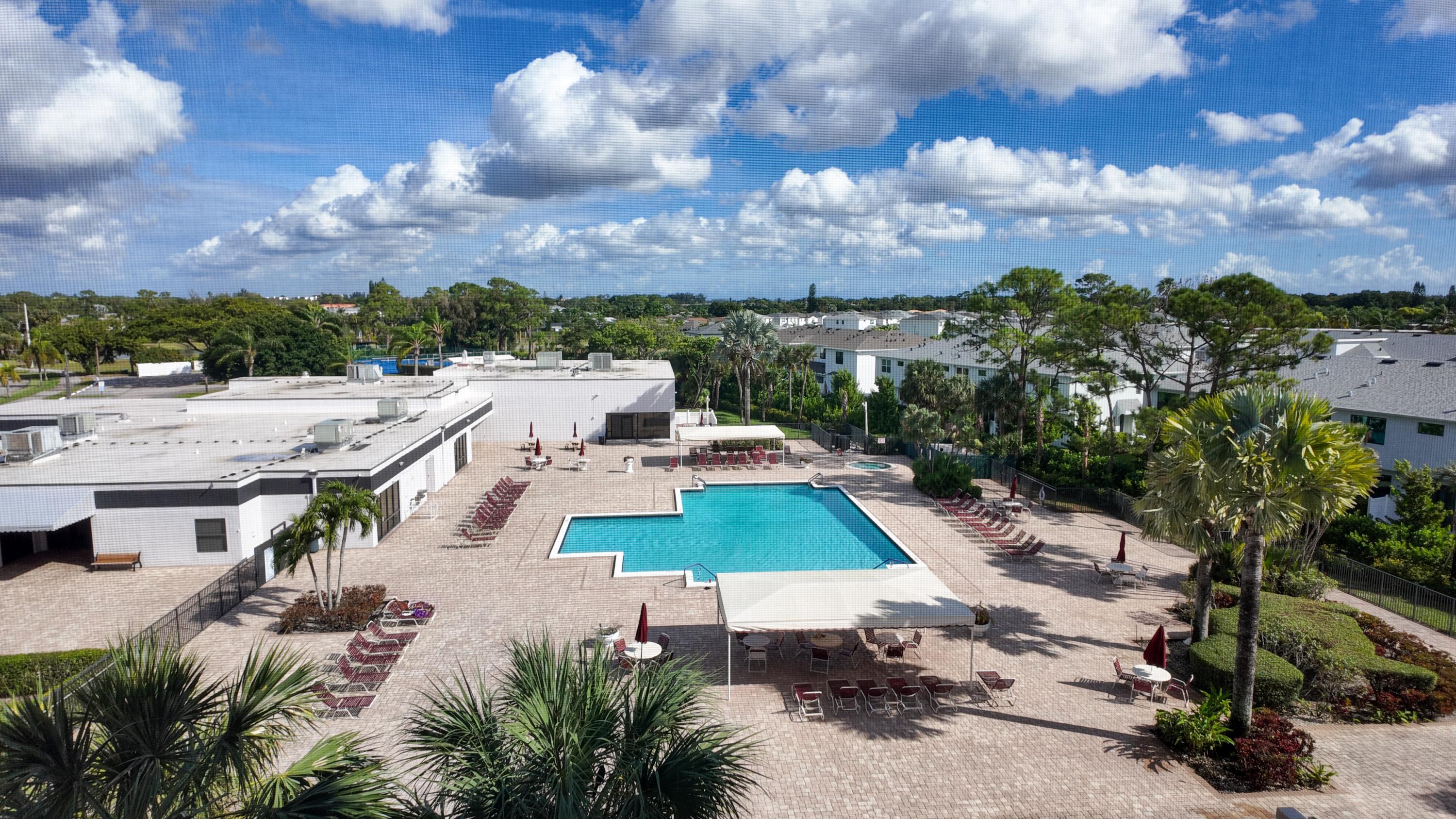 Welcome to this bright, beautifully updated condo in a vibrant 55+ community, offering serene balcony views overlooking the resort-style pool. Ideally located next to the main clubhouse, you'll enjoy effortless access to the fitness center, library, live shows, social events, tennis, and pickleball. Bus service is available, and rent includes water, recreational amenities, and basic cable (BlueStreamTV) service. Experience comfort, convenience, and an active lifestyle all in one place. (Condo comes UNFURNISHED)