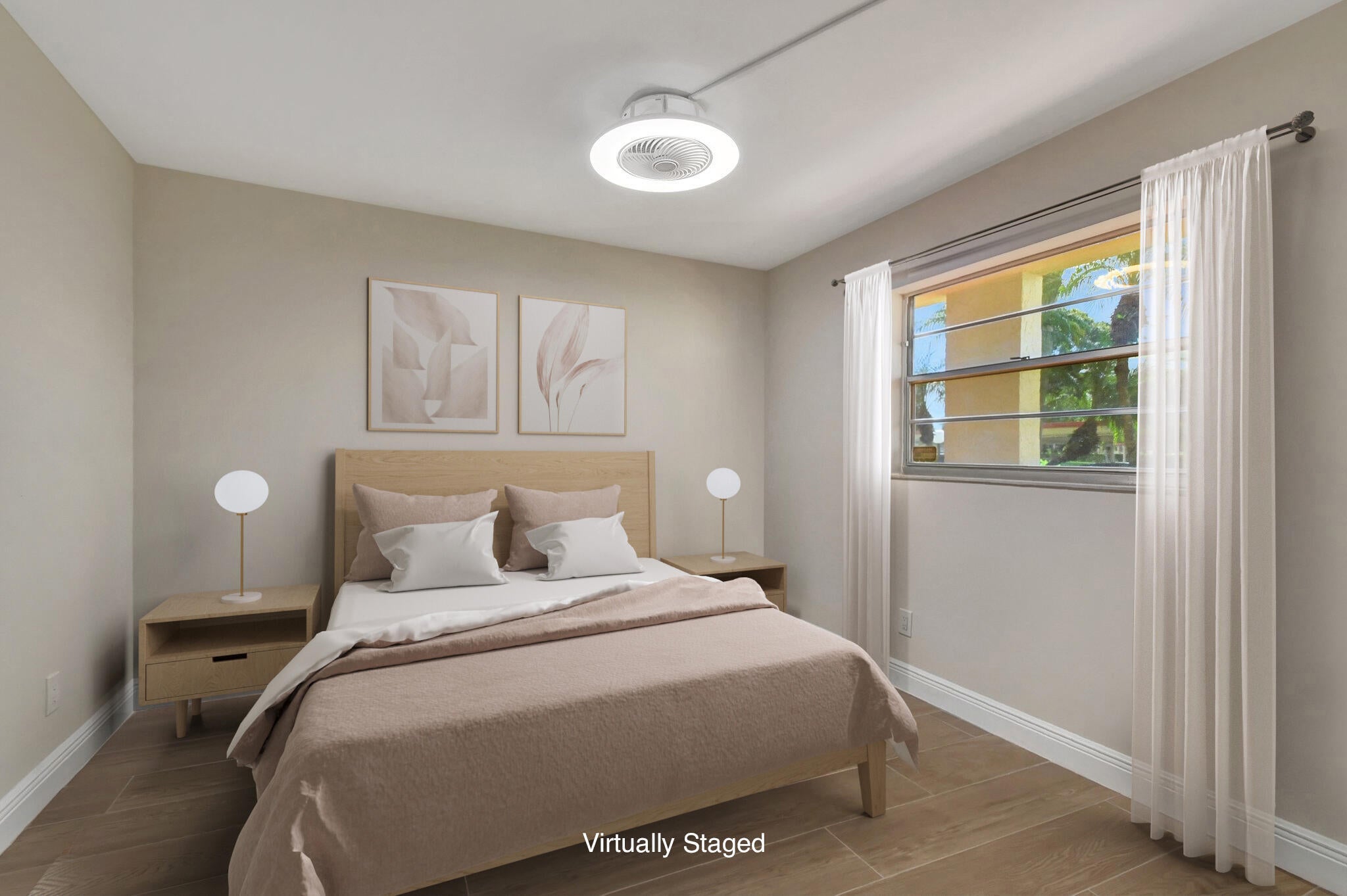 :Active adult community. Completely remodeled ground-floor unit with modern upgrades throughout. The redesigned kitchen features new cabinets, Stainless Steel appliances, and an open-concept layout that flows into the living area. Both bathrooms have been fully updated with new showers, tiles, and vanities. The unit also includes uniform flooring, upgraded lighting, a new electrical panel, and a brand-new washer and dryer with extra storage. Enjoy stunning golf course views from this bright, airy space in the beautifully landscaped Boca Barwood community. Conveniently located near shops, restaurants, and minutes from the Turnpike and I-95. Includes covered parking and access to a pool, sauna, pool table, library, card table, pickle ball courts, shuffleboard.