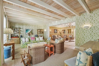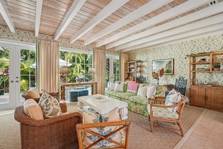 This incredibly chic Bermuda-style home is truly move-in ready. Completely renovated and reimagined in 2018 by renowned architects Richard Sammons and Anne Fairfax, the residence blends timeless elegance with modern comfort. Offering 3 bedrooms, 3 full baths, and 2 half baths, the home is filled with exceptional design details: natural coquina stone floors throughout, pecky cypress beams in the dining loggia, a soaring tray ceiling in the living room, and multiple sets of French doors that open to lush gardens and sunlit terraces. Bathed in natural light, the home's open, modern flow makes it ideal for effortless entertaining. Outdoors, a series of inviting terraces, including a covered terrace overlooking the pool creating a serene tropical escape.