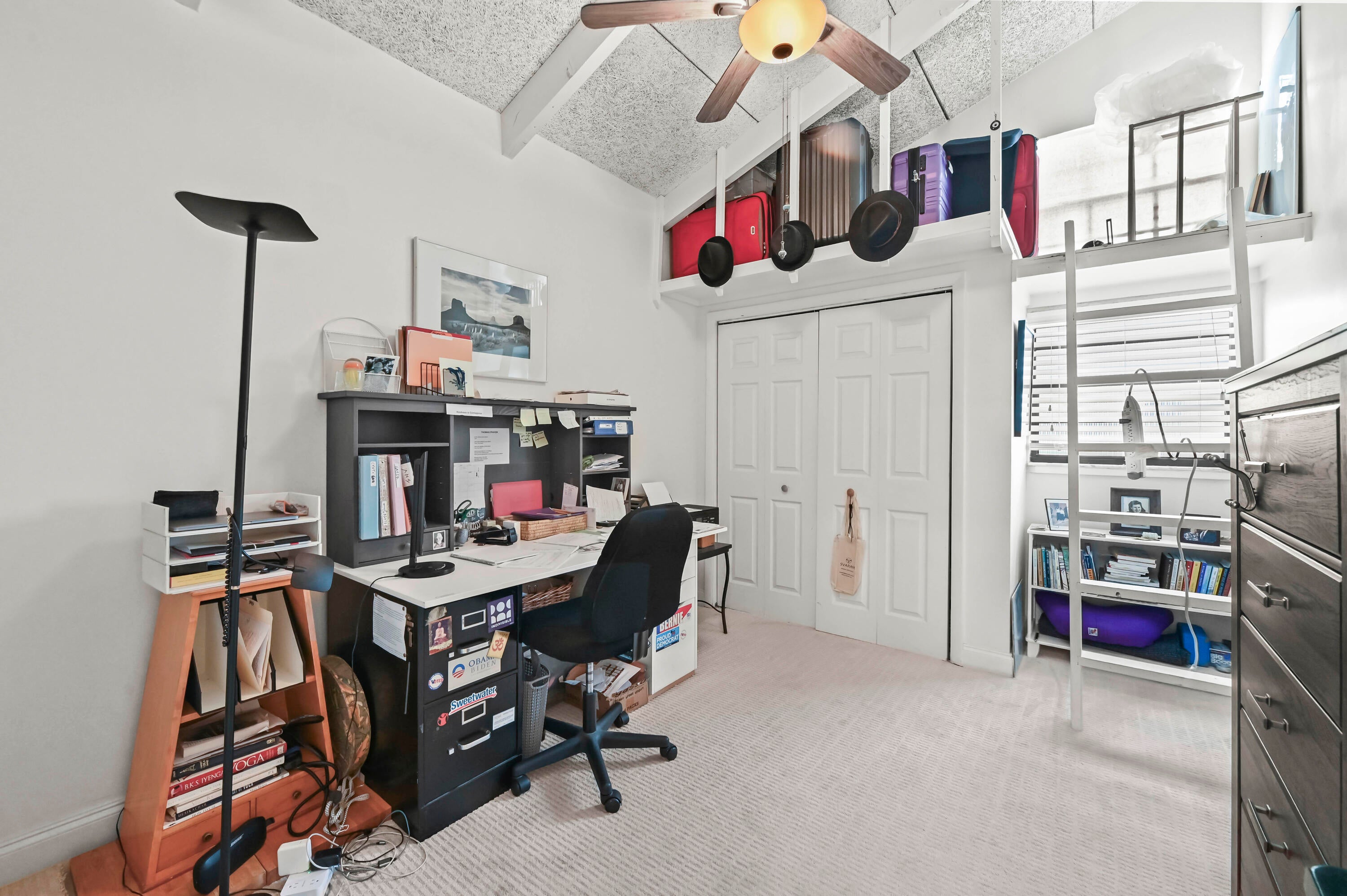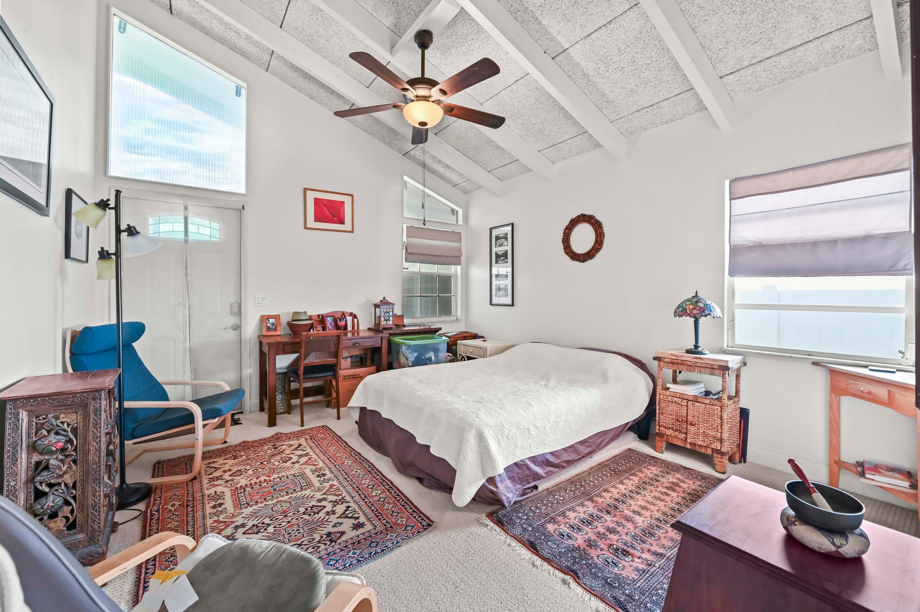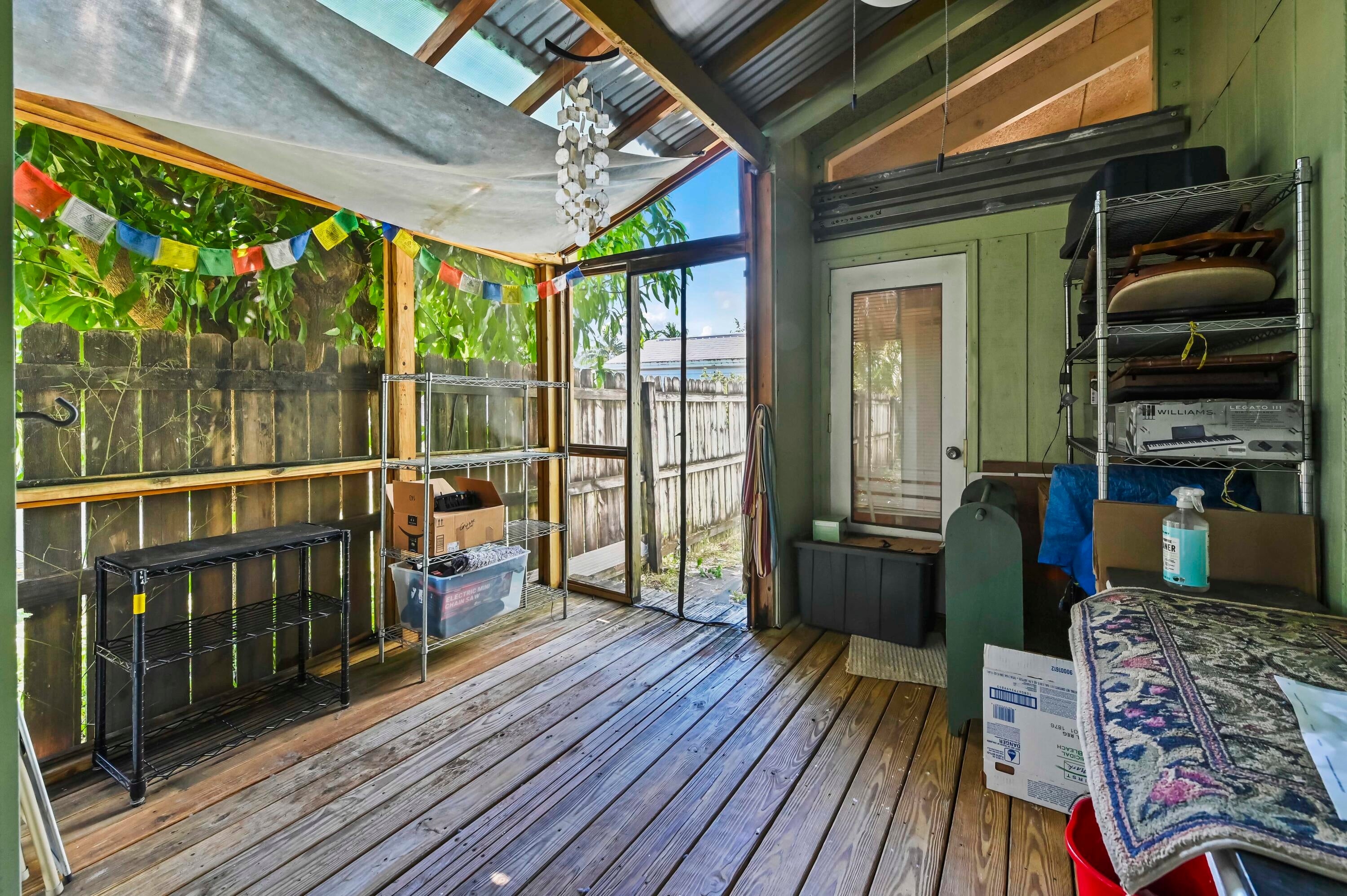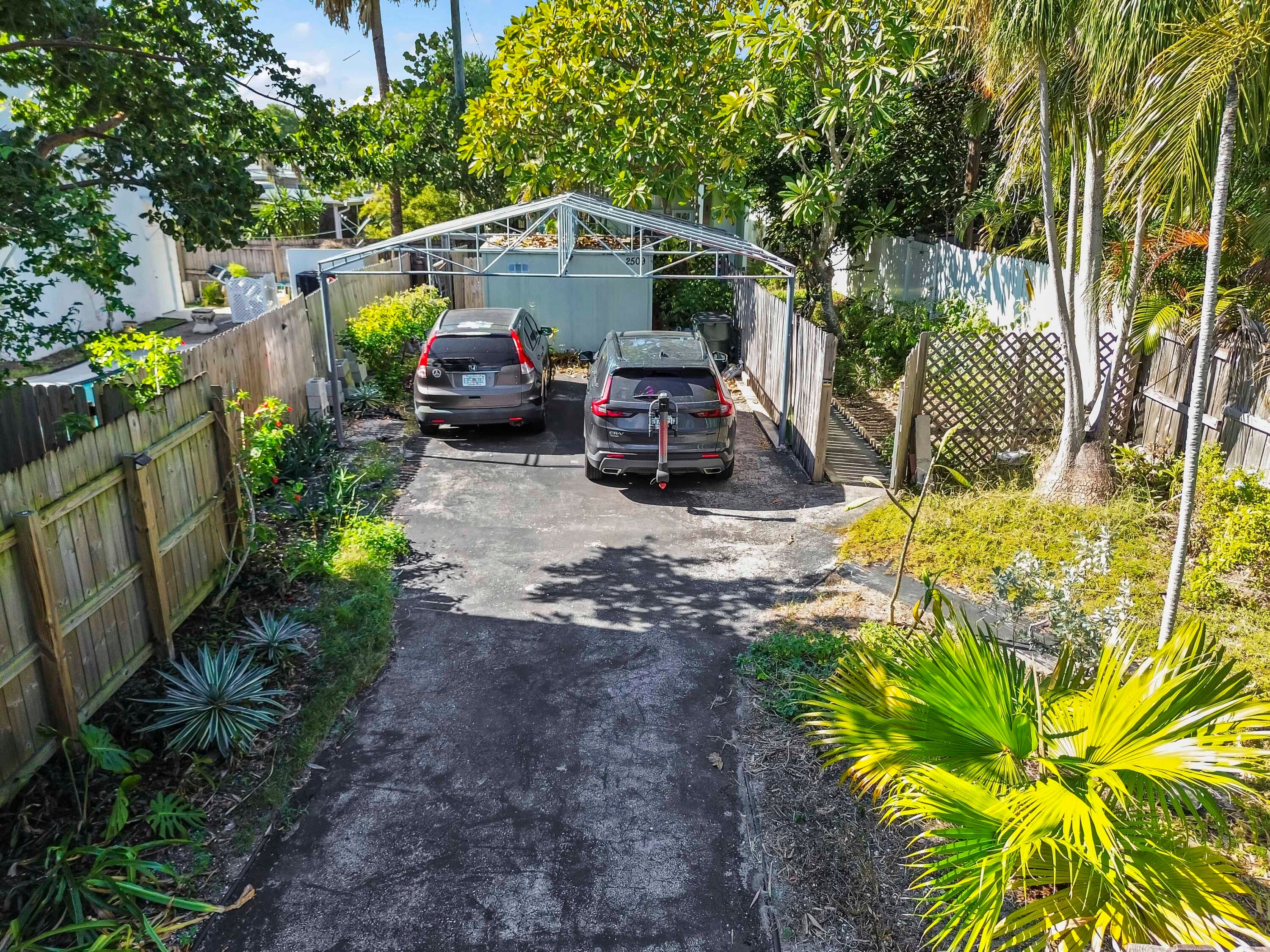 Welcome to this charming 1-story home in the highly desirable College Park neighborhood, offering comfort, convenience, and beautiful natural light throughout. This residence features 1,028 sq ft of living space, with 2 bedrooms and 1 bath, thoughtfully designed with a split-bedroom layout for added privacy. The second bedroom includes a cozy loft, perfect for storage or additional living space.The home features high ceilings that create an open, airy atmosphere, making the living areas feel more spacious while enhancing natural light and airflow. Tile flooring runs through the main areas, with carpet in the bedrooms for added comfort.The beautifully updated kitchen is filled with natural light from large windows and skylights and includes appliances and a kitchen counter with bar seating, creating a warm and inviting gathering space. A washer and dryer are also included for convenience. Outside, you'll enjoy a large, fenced backyard, offering endless opportunitiesexpand the home, add a pool, build a lush garden, or create an outdoor entertainment oasis. A large shed provides ideal storage or workshop space. Parking is plentiful with a 2-car carport and an extra-long driveway accommodating multiple vehicles. With no HOA, you have the freedom to personalize the property to your needs. This home is perfectly located just moments from the Intracoastal Waterway and only a 5-minute drive to Downtown Lake Worth Beach and West Palm Beach, offering quick access to beaches, shops, dining, and entertainment. A fantastic opportunity to own a comfortable home on an oversized lot in one of the most sought-after neighborhoods in the area!