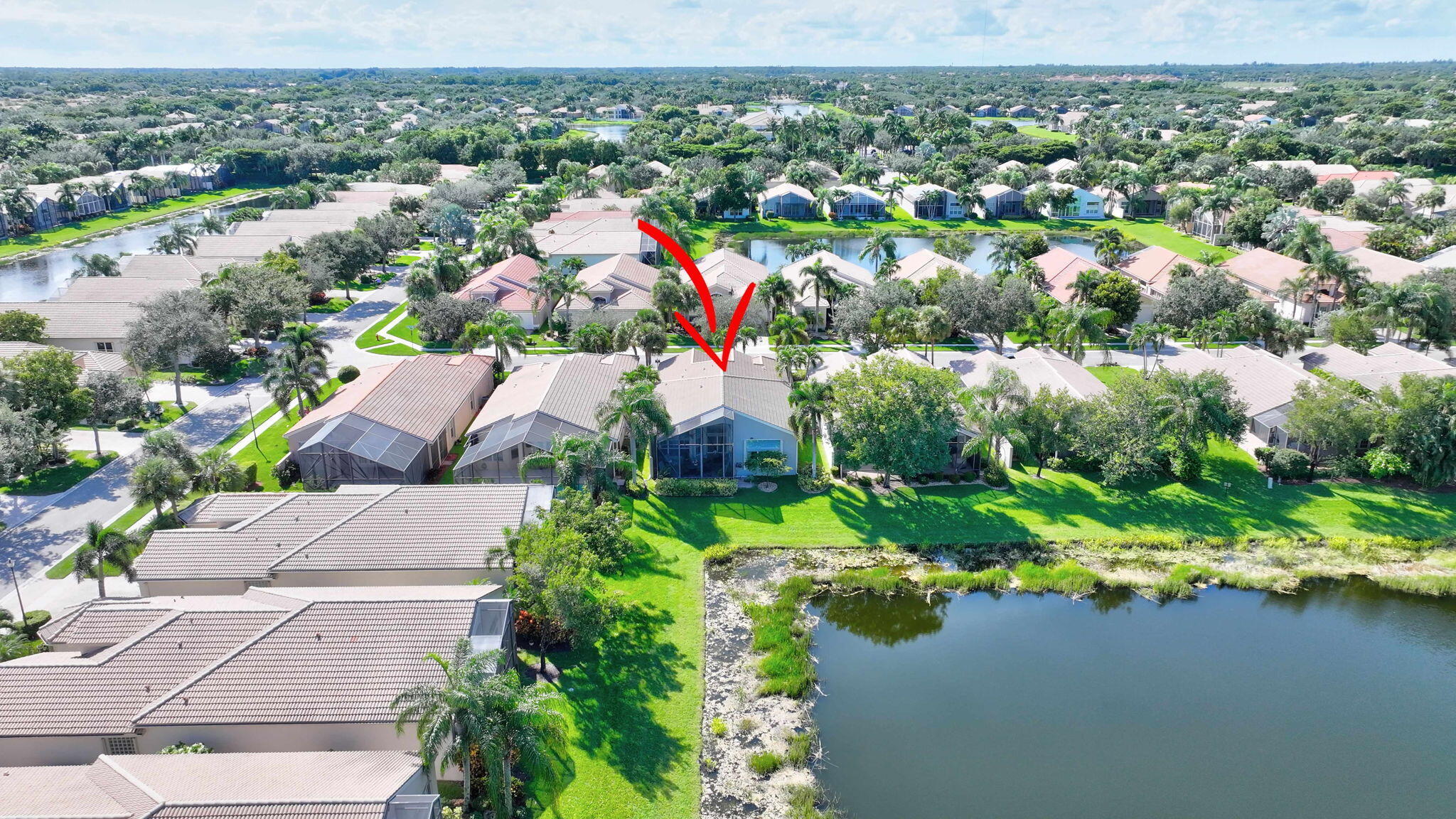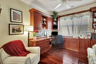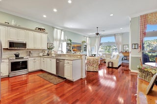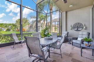 An amazing community with a NEWER ROOF(11/2021)! Wake up to the sunrise on your extended patio with a wide lake view. This Indian III model(3rd bdrm-den) in resort style 55+ Valencia Shores is a short walk from the main clubhouse, pickleball, tennis & bocce courts. A lovingly maintained & upgraded home with gorgeous Brazilian cherry 3/4'' hardwood floors throughout the living area including the kitchen with carpet in the bedrooms. Beautiful wood cabinets with pull out drawers in the kitchen & primary bathroom. Newer appliances, granite countertops in the kitchen & guest bathrooms & quartzite in the master. Frameless shower in the primary bathroom, updated walk-in shower in guest bathroom & plantation shutters in the master. Come enjoy this active, beautiful community!