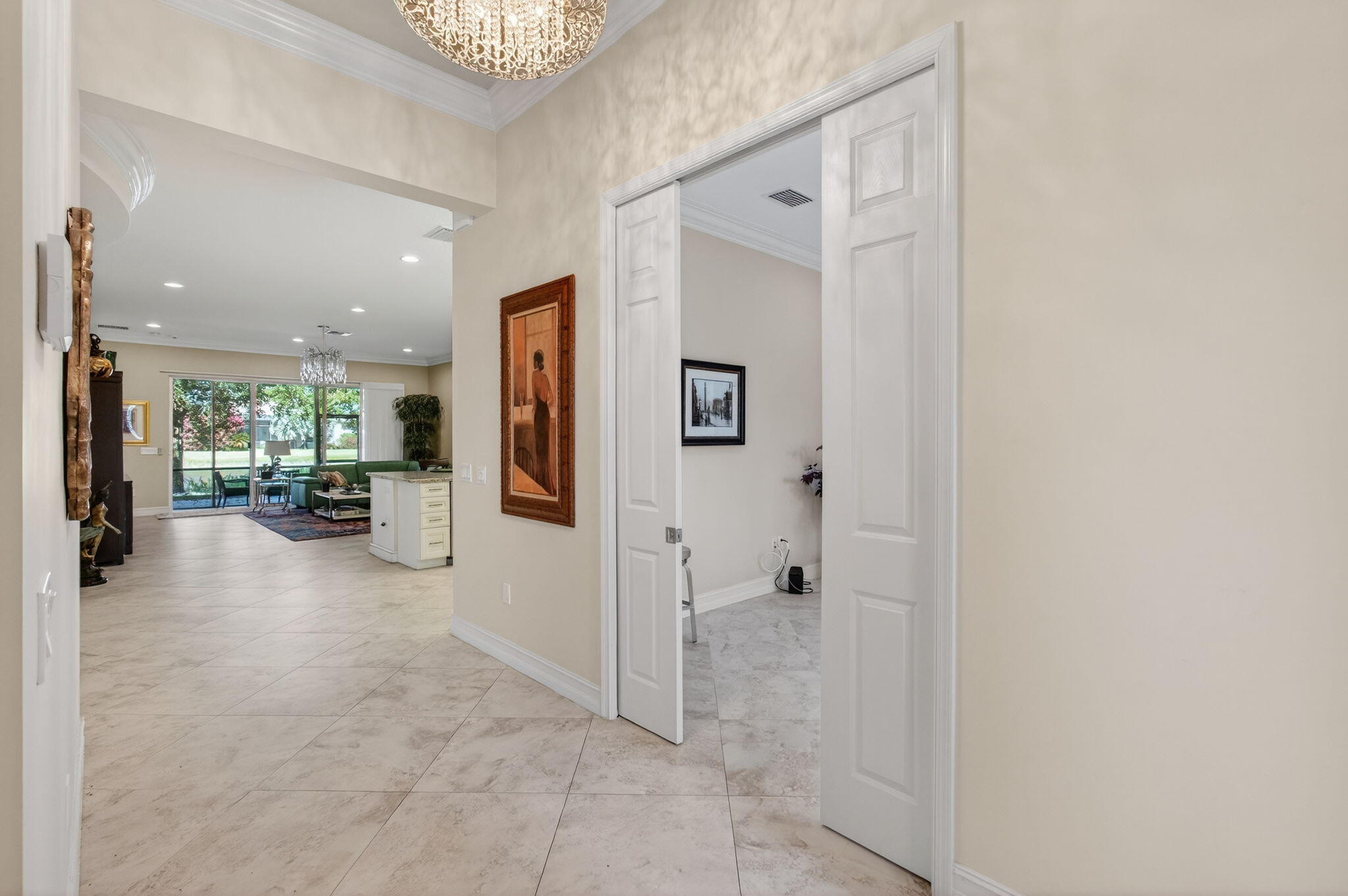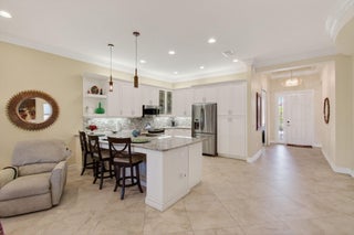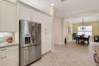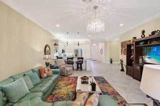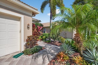 Welcome to the Rebecca model in the prestigious Valencia Reserve, perfectly situated on a south-facing lot that draws in natural light throughout the day. This charming home features a well-maintained roof, only 12 years old, along with efficient A/C systems installed in 2024 and a reliable water heater updated in 2012, ensuring peace of mind for years to come.As you approach the property, you're greeted by a tastefully landscaped exterior. The paved driveway leads to a spacious two-car garage, accentuated by vibrant tropical foliage that surrounds the entrance. The meticulously curated landscaping adds a touch of elegance to the property's street appeal.Upon entering, you'll find a thoughtfully designed living space boasting 2019 square feet. The interior showcases a diagonal tile flooring that creates a sense of flow throughout the home, while plush carpeting enhances the comfort of the bedrooms. Crown molding and 6-inch baseboard molding throughout add to the refined aesthetic, creating a cohesive and welcoming atmosphere. The open concept layout encompasses a modern kitchen complete with stainless steel appliances, ample cabinetry, and a beautiful granite countertop that serves as a central hub for family gatherings and entertaining guests. The well-lit living area transitions seamlessly to an expanded patio area, ideal for outdoor leisure, offering an inviting space to unwind or host alfresco dining. Additional features include accordion shutters, providing both security and convenience during the hurricane season, and an expansive outdoor space that invites relaxation. The property is bordered by lush greenery and also offers serene water views from the backyard, fostering a tranquil environment for everyday living. Enjoy the many amenities that Valencia Reserve has to offer, along with a vibrant community atmosphere. With its attractive features and prime location, this property is not just a home but a lifestyle choice.