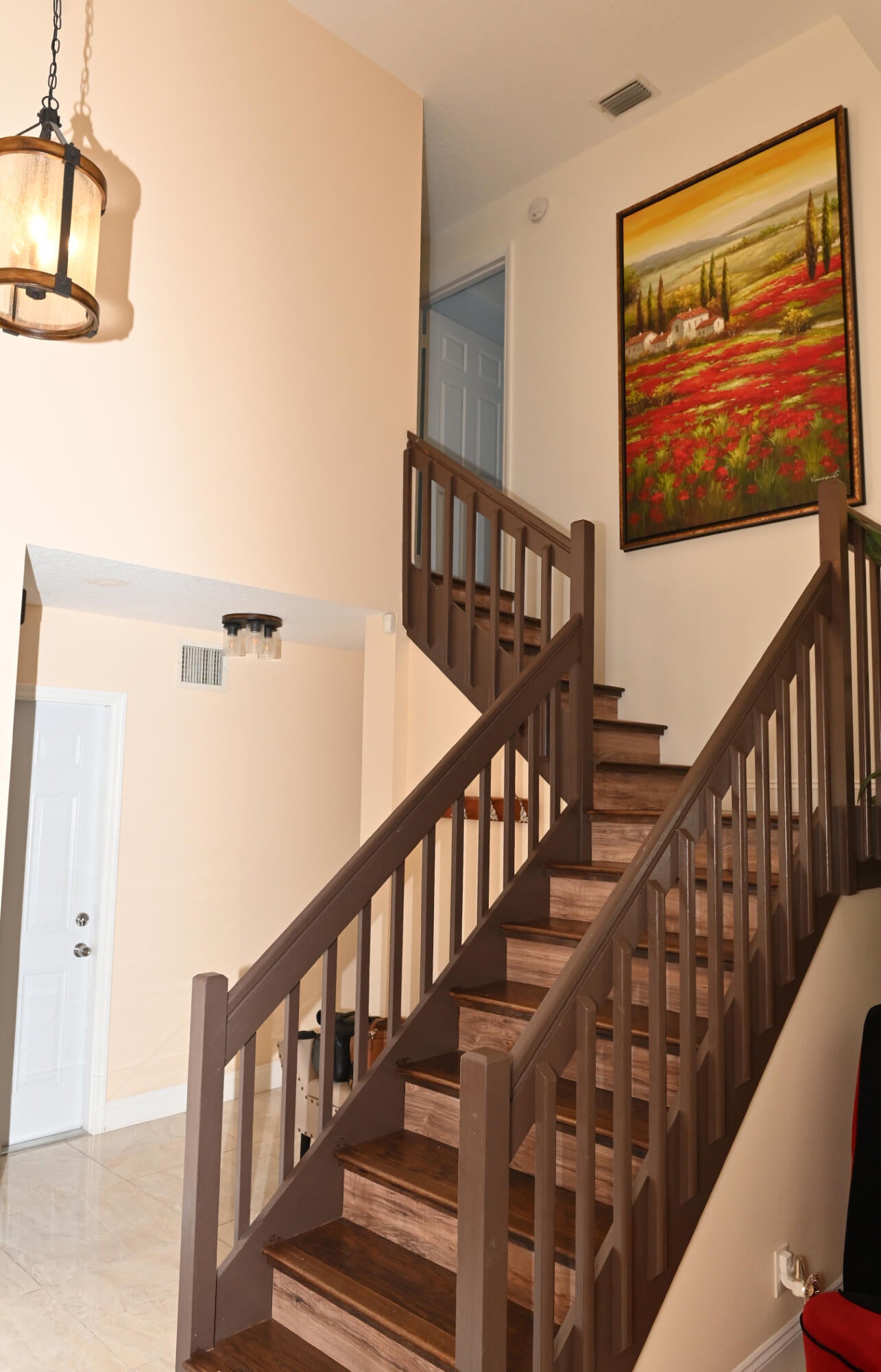 Beautiful 4-bedroom, 2.5-bath single-family home on a private cul-de-sac lot featuring a screened swimming pool and fully fenced yard. This move-in-ready residence offers tile flooring throughout the living areas, updated kitchen with modern cabinetry and countertops, and volume ceilings in the formal living room. Major upgrades include a tile roof and impact windows replaced in 2017, AC in 2023, water heater in 2024, and pool resurfaced in 2016. The spacious primary suite and well-sized secondary bedrooms provide comfort for the whole family. Located in a top-rated Wellington school zone with low HOA fees, this home blends quality, convenience, and exceptional value.