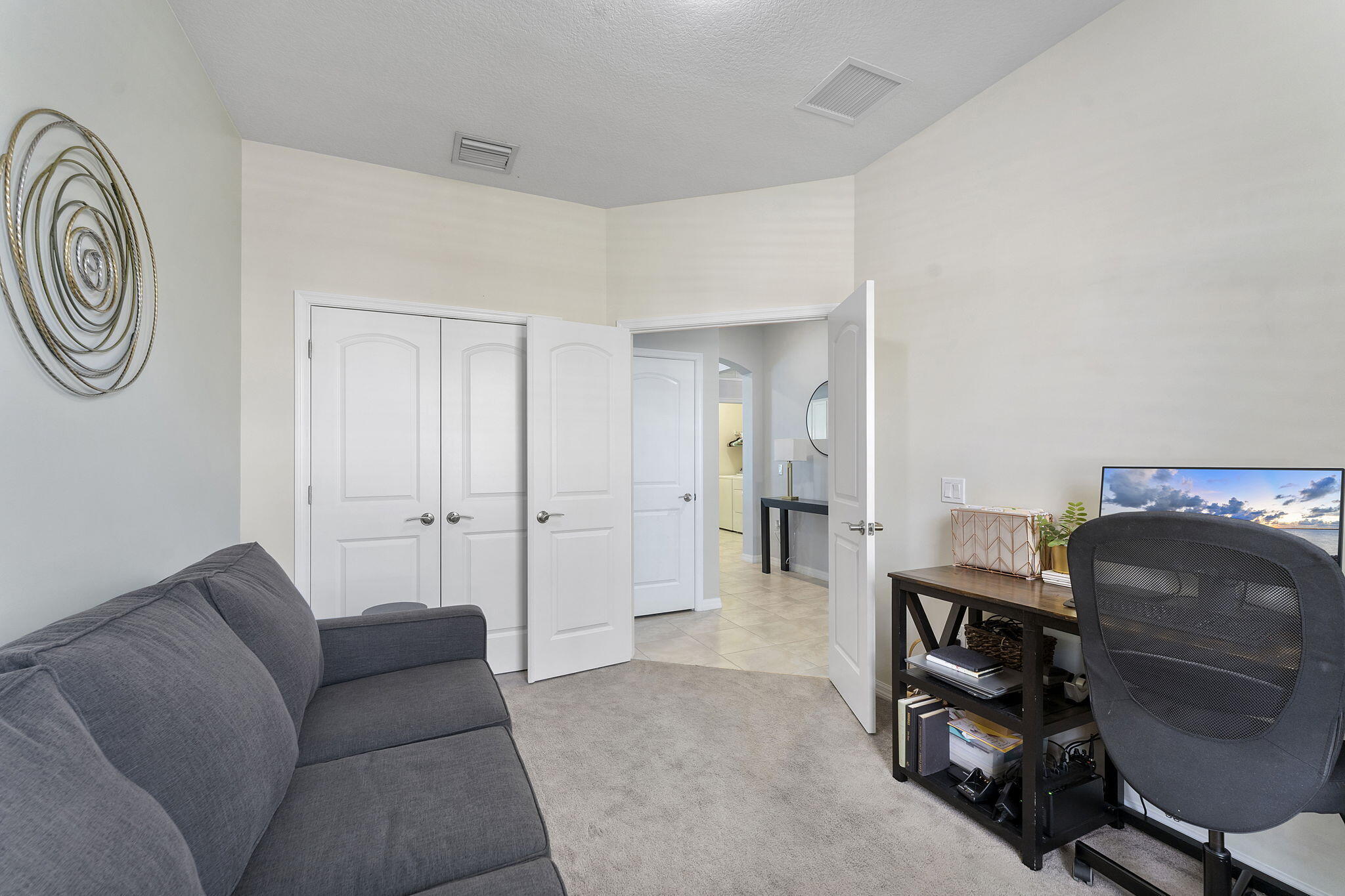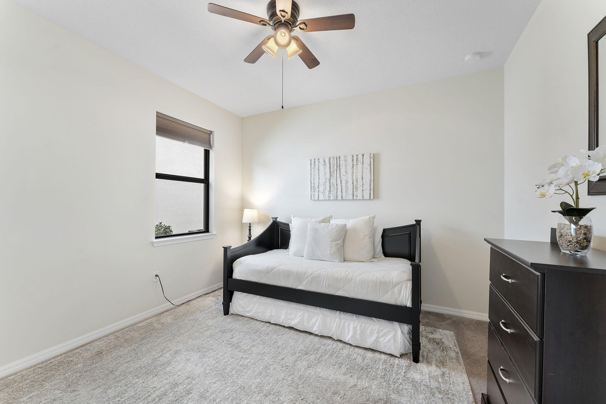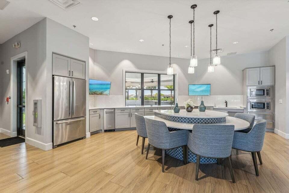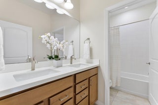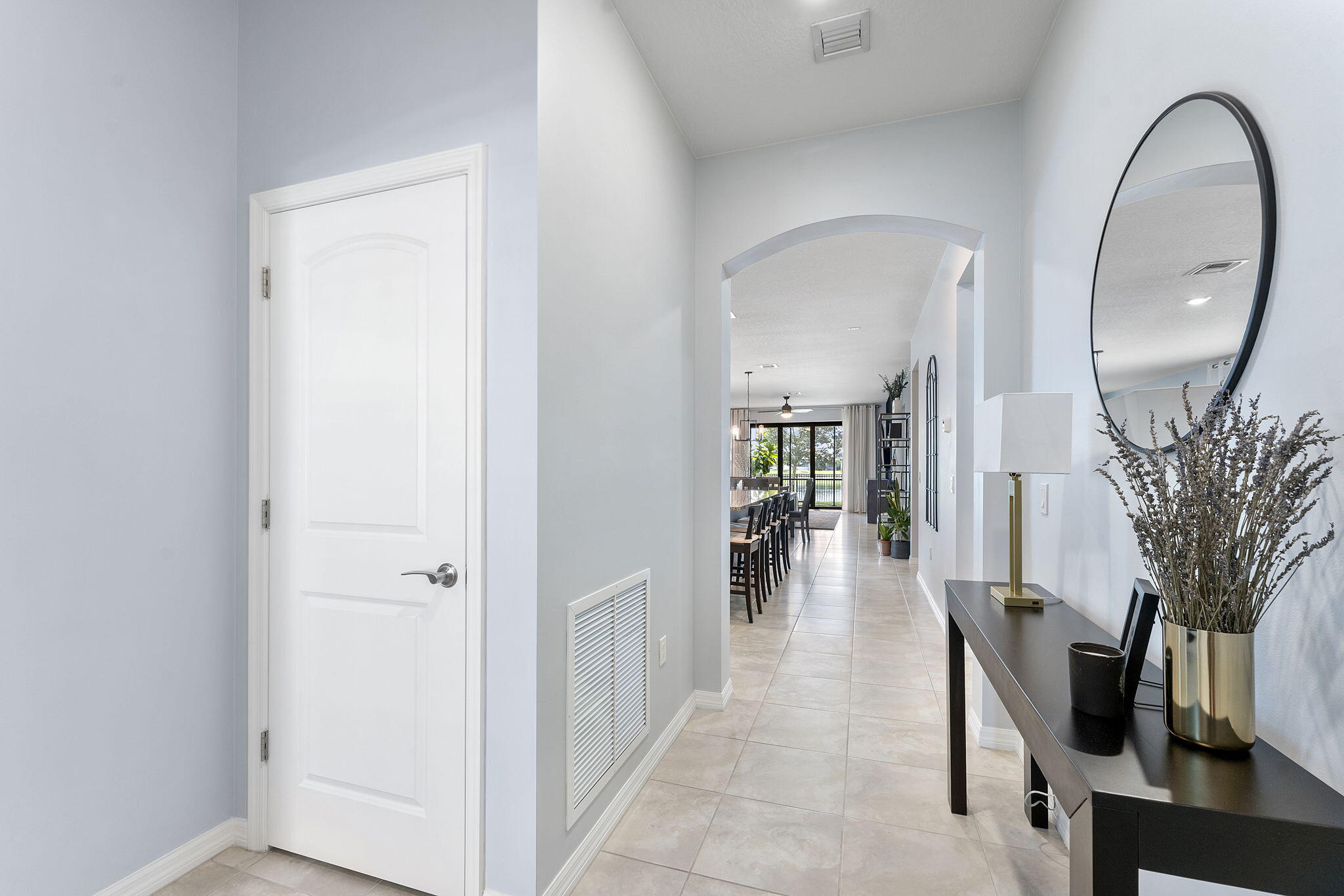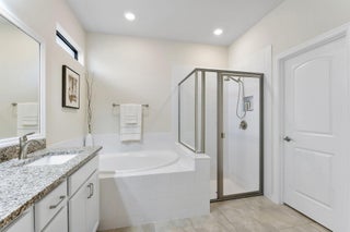 Beautifully upgraded 4-bedroom, 2-bath, 2 car garage home featuring bright finishes and one of the best indoor-outdoor living setups in the community. The upgraded disappearing slider fully opens the living room to the screened-in brick-paver patio, creating a seamless flow to peaceful lake views and nightly sunsets. The open kitchen stands out with granite countertops, white cabinetry, stainless steel appliances including a gas range, and a stylish tile backsplash. The spacious primary suite overlooks the water and offers a large shower and a soaking tub, walk-in shower, and dual sinks. Additional upgrades include an extended garage for extra storage or larger vehicles, neutral tile flooring throughout the main areas, modern feature walls, and a welcoming foyer.