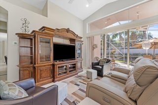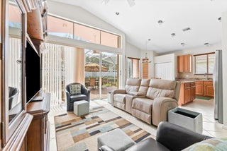 Beautiful, bright single-family rental in the resort-style 55+ community of Venetian Isles. Located on a quiet cul-de-sac with no rear neighbors, this home offers an open layout with diagonal tile flooring throughout the main living areas and a spacious screened-in patio perfect for relaxing or entertaining. The kitchen features 42'' wood cabinetry, granite countertops, tile backsplash, and GE Profile appliances. The private primary suite includes a vaulted ceiling, large walk-in closet, and oversized bathroom with dual vanities, jetted tub, and step-in shower. Venetian Isles presents a newly renovated clubhouse with top-tier amenities: resort-style pools, tennis, pickleball, fitness center w/ yoga studio, bocce, restaurant/bar, billiards, card rooms, arts & crafts, library & social hall