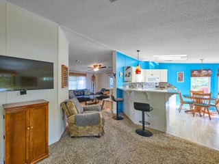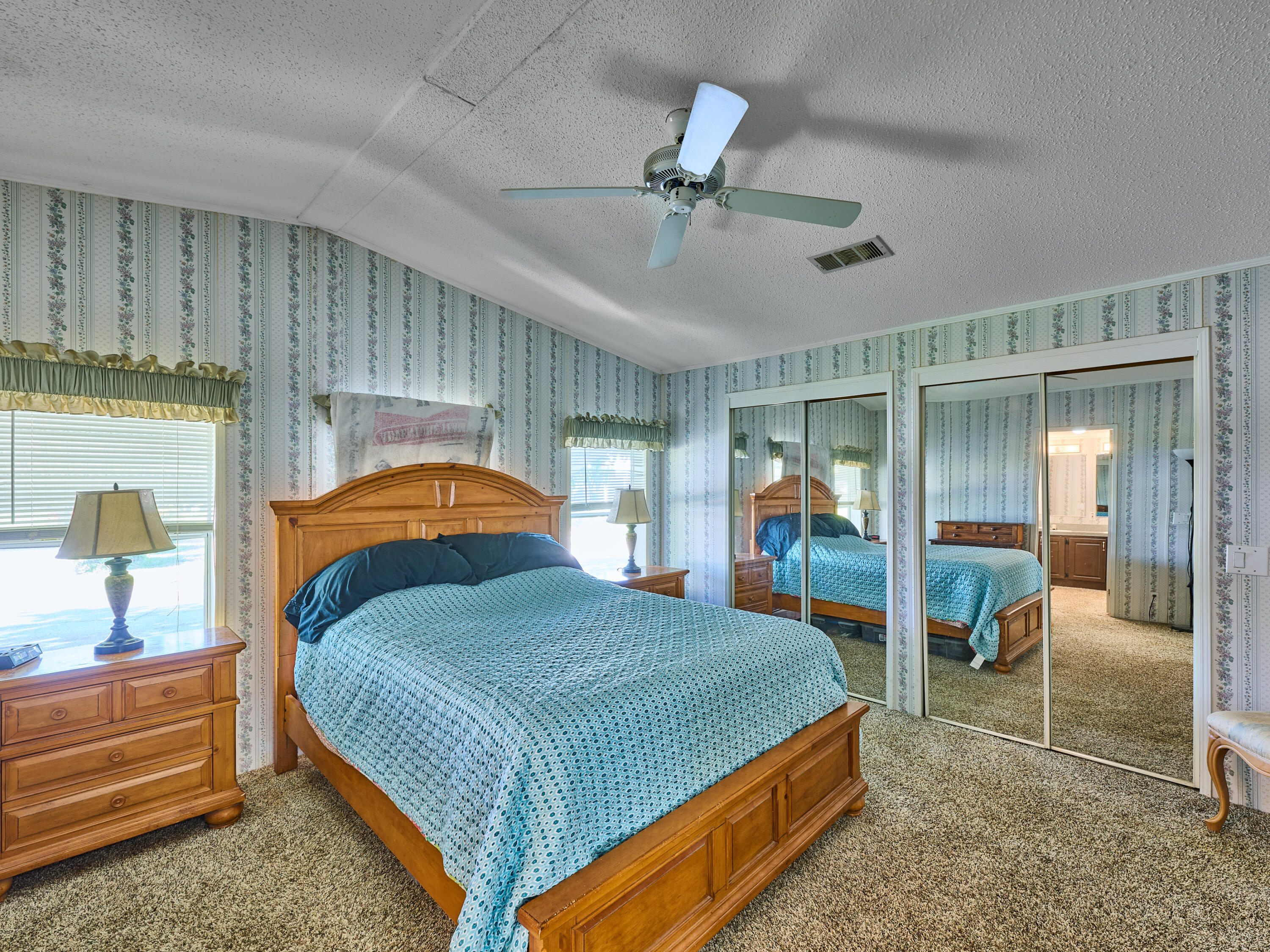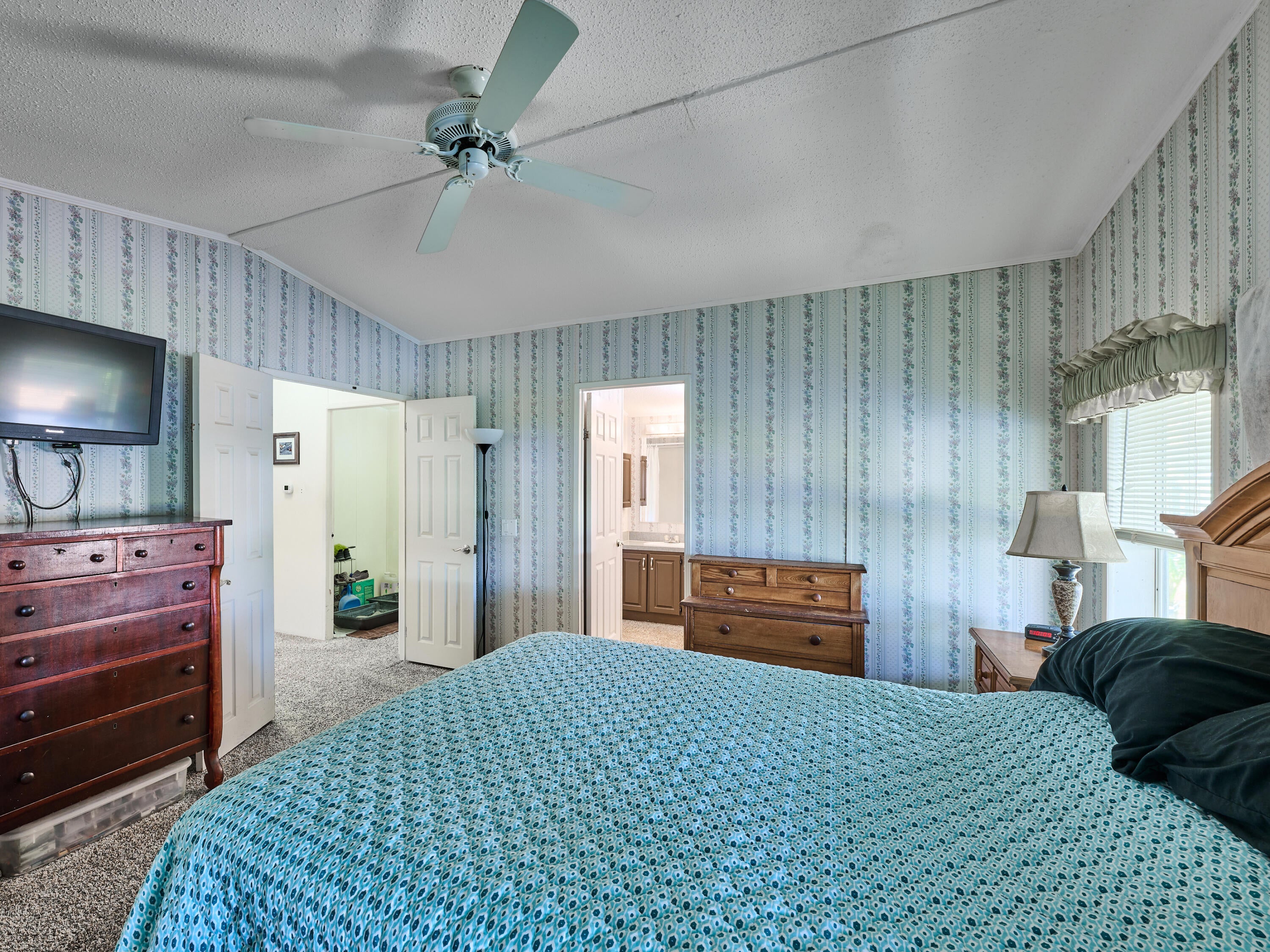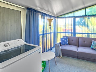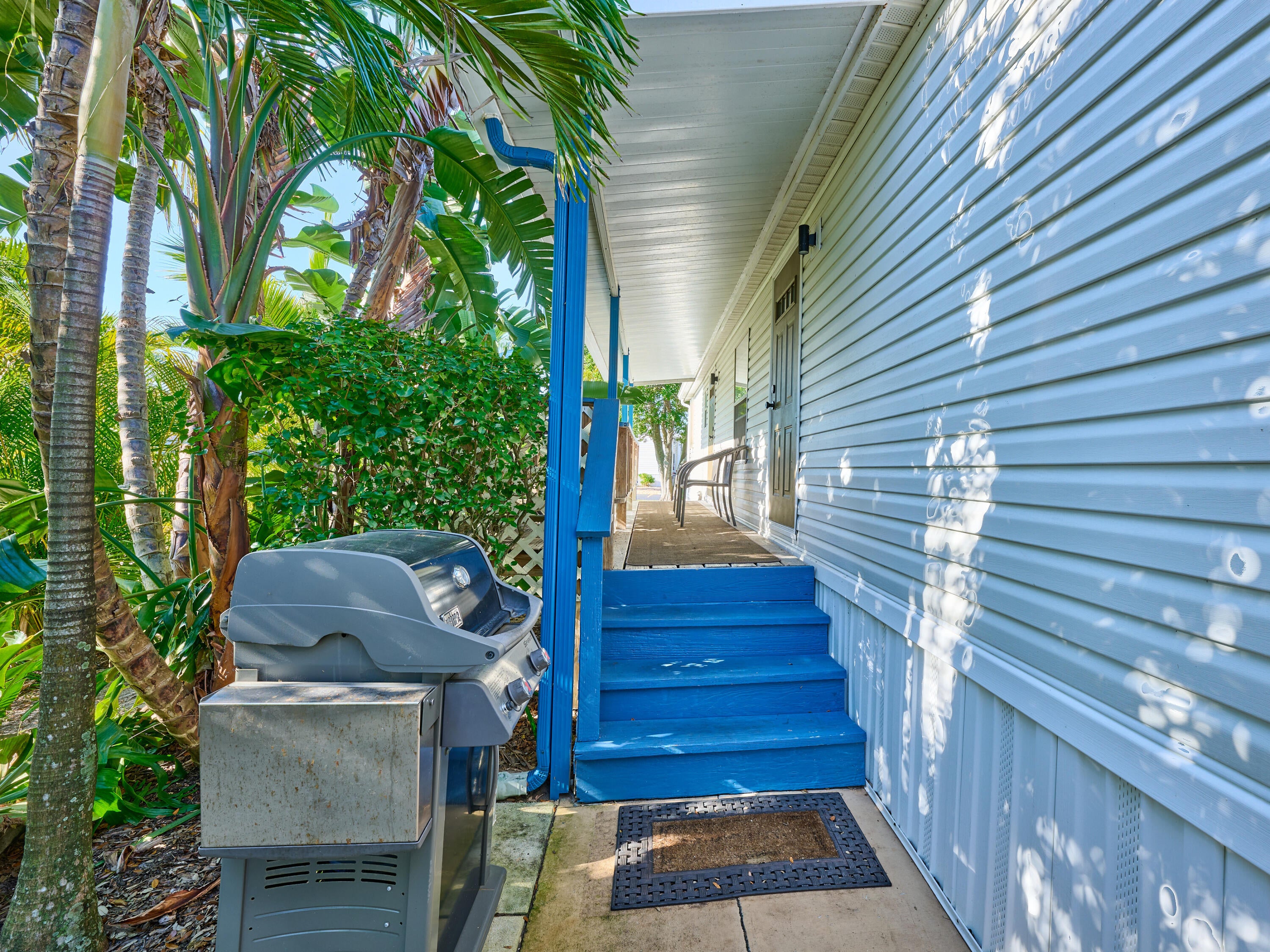 1.5 MILES TO HOBE SOUND BEACH. BOAT/RV STORAGE AVAILABLE. 2 BEDRM/2 BATH SPACIOUS 1998 MANF HOME. WIDE OPEN PLAN!! WOODBRIDGE 55+ COMM. WHICH DOES ALLOW 35 Y.O. IF LIVING W 55+ SHARE HOLDER. BEAUTIFUL KITCHEN W SOLID SURFACE COUNTERS, WHITE CABINETS & PANTRY W PULL OUT SHELVES. COVERED PORCH OVERLOOKING PRIVATE TROPICAL YARD - NO HOMES ON RT OR BEHIND HOME. LR W EXTRA STORAGE LEADS OUT TO 20X10 GLASSED IN & SCREENED FL RM - OFF THAT ANOTHER 10X10 SCREEN RM. HUGE MASTER W DOUBLE DOOR ENTRY & ENSUITE BATH w DUAL SINKS, SOAKING TUB & STEP IN SHOWER. GOOD SIZE 2ND BEDRM & 2ND FULL BATH. NEW A/C 2022, METAL ROOF JUST RE-SEALED! SOARING CEILINGS - WINDOWS GALORE! NEW EXTERIOR DOORS AND PAINT. ACTIVE CLUBHOUSE, HEATED POOL, SHUFFLEBOARD & ACTIVITIES. $250/MO FEE INCLUDES WATER/SEWER/CABLE