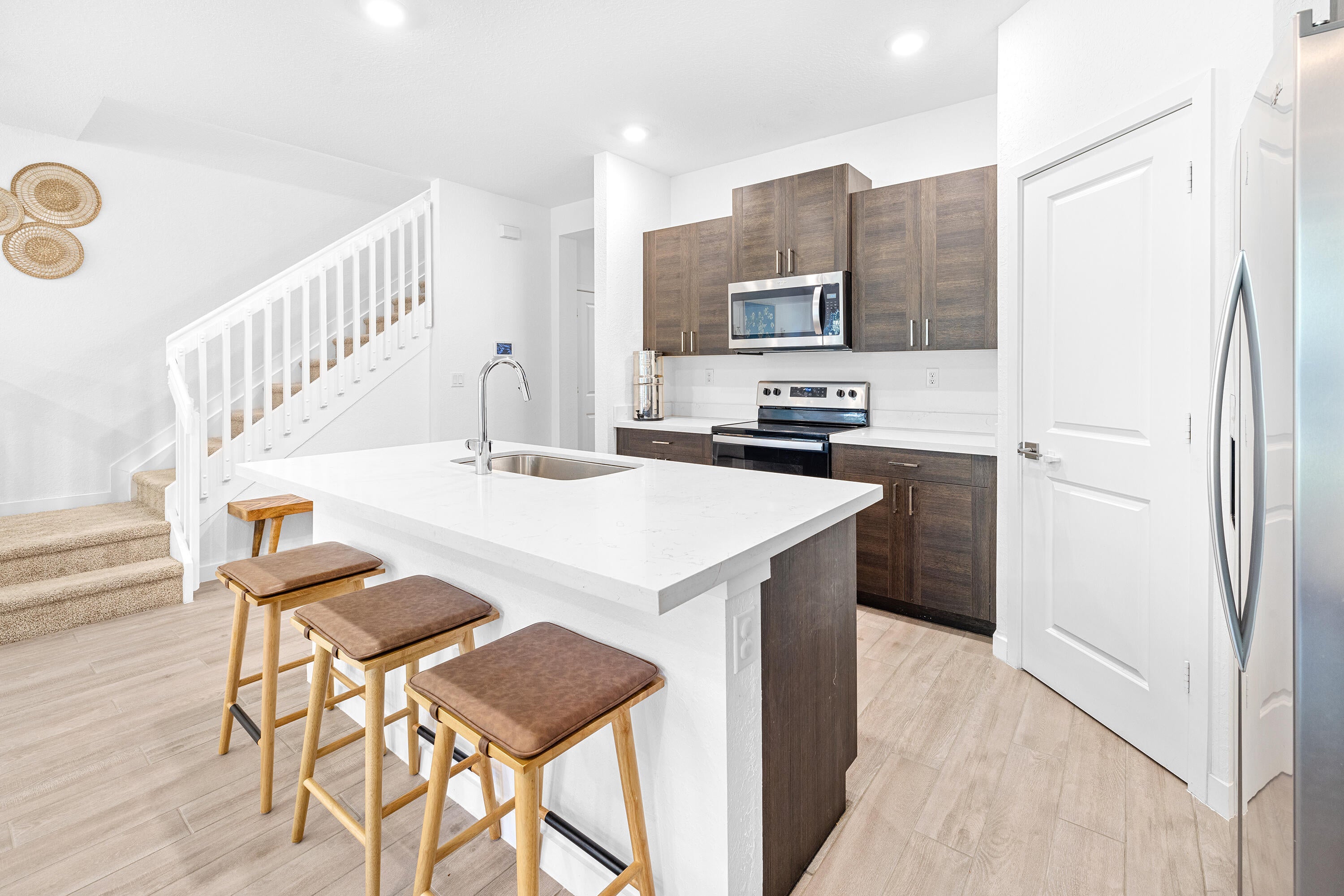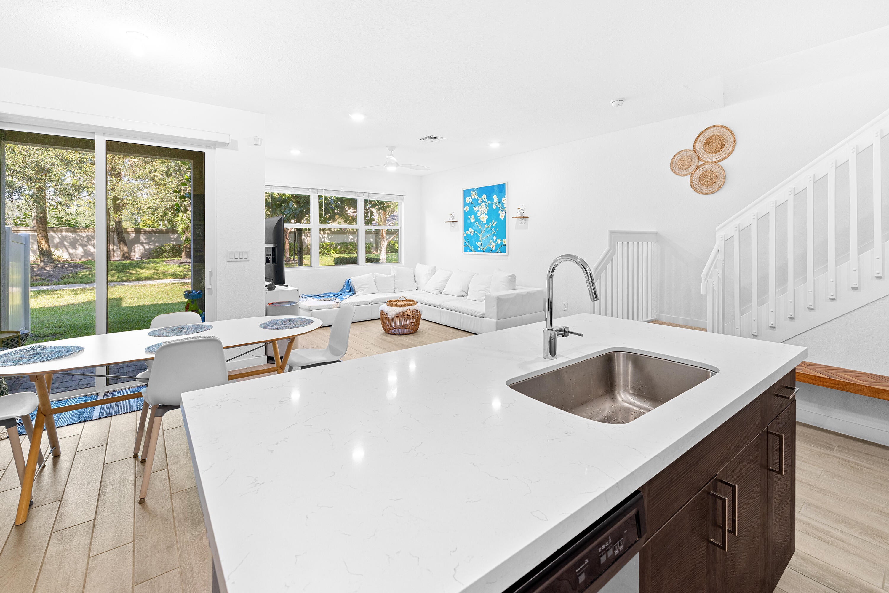 Current seller's FHA loan is assumable at 2.5%! Built in 2020, this 3-bedroom, 2.5-bath townhome offers comfort and modern living in a desirable Lyons Road location. It is finished with great features such as FULL HURRICANE IMPACT Low-E windows and doors, a UV-light AC system, and whole-house water filtration system. The open-concept layout offers porcelain plank tile on the main level and a kitchen with quartz countertops, stainless steel appliances, ample cabinetry, and a pantry. Upstairs, the spacious primary suite includes a walk-in closet and en-suite bath with dual sinks, walk-in shower, and private water closet. A versatile loft and second-floor laundry add everyday convenience. Enjoy your mornings or evenings on the covered patio.The 1-car garage and 2-car driveway provide practical parking. HOA includes 1G fiber optic internet, landscaping, and common area maintenance. Town Commons is a great community with a swimming pool, walking trails and gazebos. It offers easy access to FL Turnpike, 441, grocery stores, and shopping. Explore the 3D virtual walk-through today.