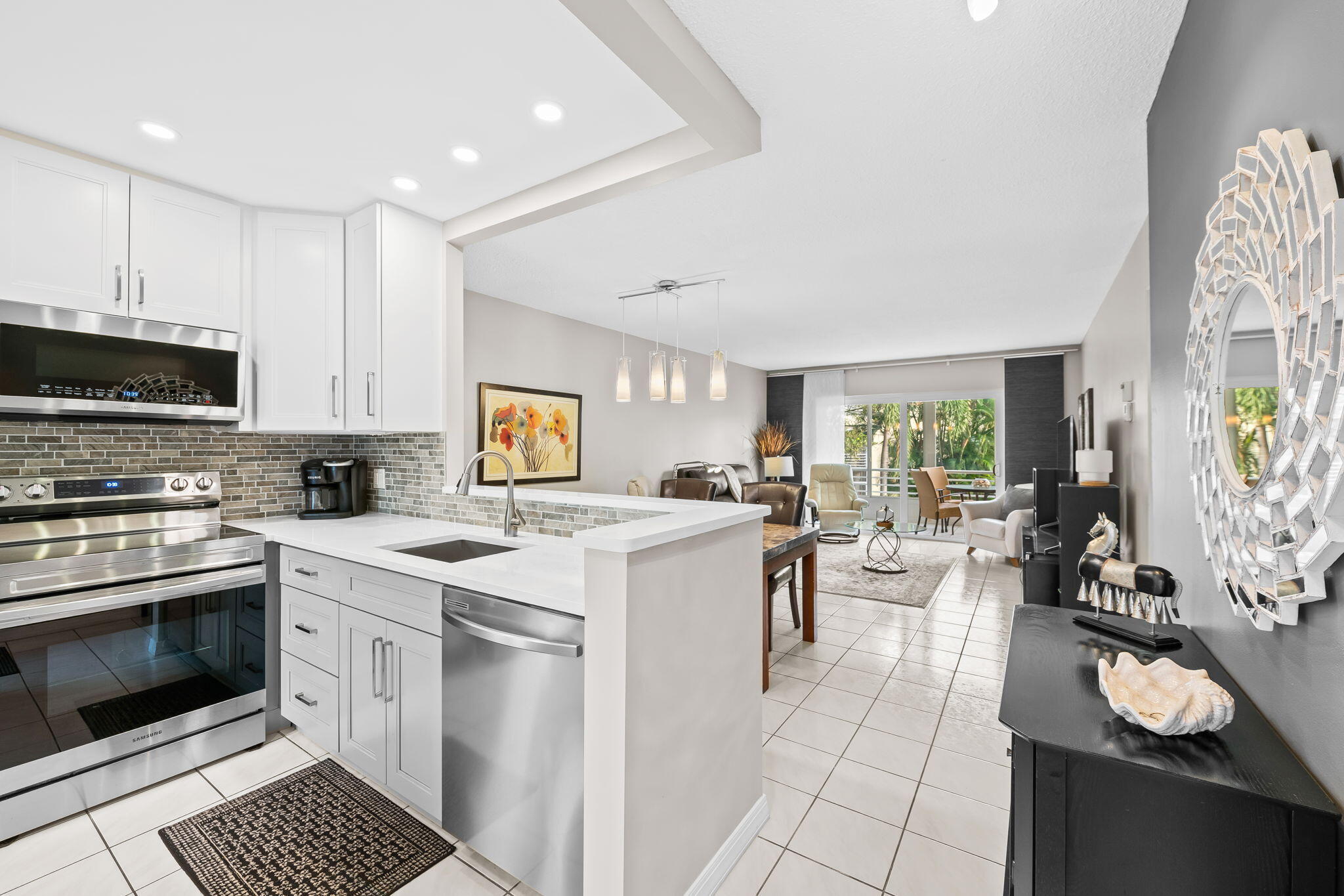 Fully renovated 2-bedroom, 2-bath condo featuring a spacious open-concept design and abundant natural light. The updated kitchen flows into the living and dining areas, creating an inviting space for entertaining. Enjoy tranquil garden views from your private patio/balcony. Both bedrooms offer generous storage and renovated bathrooms. Move-in ready in a well-maintained community close to shopping, dining, and major conveniences. 55+ community with two pools, clubhouse, fitness center and library. Recently completed 50 year inspection.