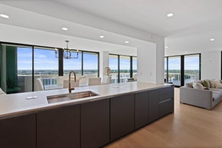 Fully furnished 2026 and 2027 seasonal rental available. This gorgeous, bright, and fully renovated 12th-floor luxury condo features 2 bedrooms plus a den and 2.5 bathrooms. Enjoy a spacious, high-end chef's kitchen that opens to the dining and living areas, with water views from every room.The condo is exceptionally quiet, with floor-to-ceiling impact windows and doors. Highlights include a formal dining room, a large primary suite with walk-in shower and dual sinks, and a full-size laundry room. The guest bedroom offers a queen bed, and the guest bath includes a walk-in shower. The den provides an ideal space for office work or TV.Conveniently located near shopping, dining, golf, and miles of shoreline. Walk to Belle's Restaurant within the community. Amenities include a pool, community room, BBQ grills, and more.