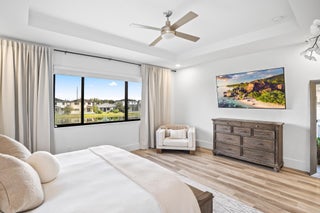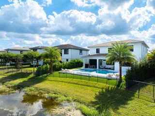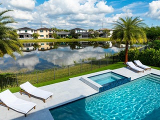 Exquisite Niagara model (Presidential Collection) in desirable Cascata at MiraLago. This 5-bed, 5.5-bath residence showcases soaring ceilings, a grand open layout, and serene lakefront views. The gourmet kitchen dazzles with white cabinetry, quartz countertops, gas cooktop, snack-bar seating, and pantry. The elegant family room features custom built-ins and electric blinds framing the resort-style private heated pool and spa. Designer luxury vinyl flooring, custom lighting, and full hurricane-impact glass elevate every space. Enjoy a private first-floor guest suite and an indulgent upstairs primary retreat with spa bath and spacious walk-in closet. Exceptional amenities including two Clubhouses, Indoor basketball, Fitness center(s), gated community, and top-rated A schools.