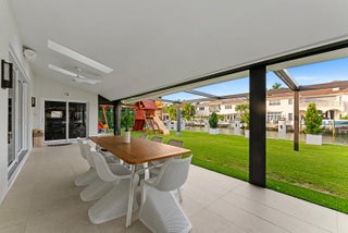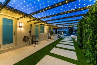 A rare waterfront compound offering two designer-renovated homes with 180' of deepwater in Tropic Isle. 945 Iris features 5BR/5BA, a first-floor primary suite, VIP guest suite, steam cabana bath, two-story living room, chef's kitchen with StruXure pergola, 2019 metal roof, and a 2024 resort pool/spa with Aqualink/Jandy/O2 plus 60' dock. 941 Iris offers 3BR/2.5BA + den, 2023 renovations, skylit patio, designer wet bar, billiard/dining room, epoxy 2-car garage, playground, golf-course turf, and its own 60' floating dock. A shared courtyard with green walls, a cold plunge, and a sand bar completes this turnkey luxury estate.The Premier Waterfront Compound in Tropic Isle An extraordinary offering in Delray Beach's most prestigious boating enclavetwo fully updated canal-front residences presented as one integrated luxury compound, delivering 180 feet of deepwater frontage, long canal views, and quick Intracoastal access. Designed for refined coastal living, this estate unites architectural sophistication with highly curated indoor/outdoor experiences across both homes. 945 Iris Drive - The Main Residence Completely rebuilt down to the shell in 2019, the primary residence showcases 5 bedrooms, 5 baths, and an elevated contemporary-transitional aesthetic. A first-floor primary suite anchors the home with serene pool and garden views, while the upstairs VIP guest suite with covered lanai offers a private retreat for family or long-term guests. A dramatic two-story foyer and living room set the tone for the home's architectural scale. The chef's kitchen flows seamlessly to the outdoor living pavilion beneath a StruXure louvered pergola, creating an all-weather dining and entertaining space. The resort-style pool and spa were resurfaced in 2024 and upgraded with Aqualink, Jandy, and O2 systems, ensuring effortless control. A tiki hut, firepit lounge, swing seating, and designer lighting bring evening ambience to life. Additional features include: 3-car garage New luxury appliances Dual Miele laundry towers Custom wet bar 2019 metal roof 60' private dock + floating dock with ramp 941 Iris Drive - The Guest House A beautifully executed companion residence, completed in 2023, offering 3 bedrooms, 2.5 baths, and a primary bonus den. Ideal for multigenerational living, long-term guests, extended family, or staff, the guest home mirrors the same design-forward vision. A covered patio with skylights and roll-down shades extends the interior outdoors, while the private backyard features a children's cedar playground and golf-course turf, creating a safe, elevated environment for play. The home's interior is anchored by a designer wet bar connecting the dining area and billiard loungeperfect for entertaining. Additional highlights include: 2-car garage with epoxy flooring and storage systems Commercial-grade washer and dryer 2022 metal roof 60' floating dock for watercraft and watersports The Courtyard & Shared Outdoor Sanctuaries The two homes are joined by a meticulously designed courtyard accessed through a custom architectural metal gate. Vertical green walls, artful plantings, and curated lighting create an intimate passage connecting both residences. At the heart of this shared space is an elevated beach-style sand bar with the outdoor kitchen island overlooking the water, creating a one-of-a-kind coastal amenity rarely found in Tropic Isle. Design & Technology Both properties feature: Interior designer-curated furnishings (included) Smart home automation Whole-property security systems Integrated audio and lighting design Luxury materials and contemporary finishes throughout Collectively, the compound offers 6,498 interior sq ft, 8 bedrooms, 7 full baths + 1 half bath, 5 garage spaces, and two independent docks, a generational family retreat, entertainers' paradise, or boutique-scale luxury compound.