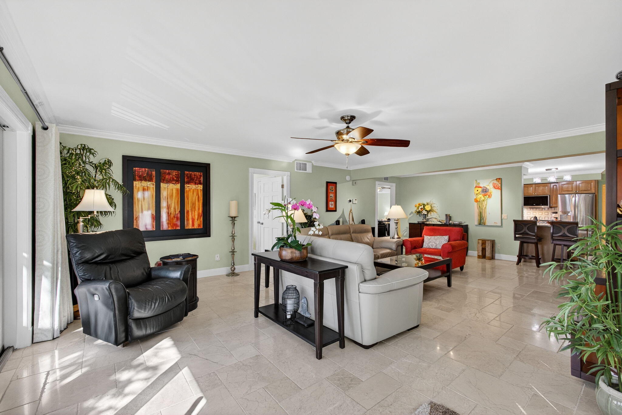 This is a rare opportunity to own in a one-of-a-kind boutique luxury condominium in Lake Worth Beach that is pet friendly and located just steps from the Intracoastal Waterway, vibrant town center, and oceanfront. This immaculate and fully renovated 2,230-sq.-ft. unit offers 3 bedrooms, 3.5 baths, a guest powder bath, formal dining room, dedicated laundry room, office, plus a 314-square-foot wrap-around balcony with views of the pool and Intracoastal - the perfect place to enjoy your morning coffee. Highlights include complete impact windows and doors and travertine marble flooring throughout. The open floor plan features a 28' x 18' living room, and a beautifully updated kitchen appointed with warm wood cabinetry, marble backsplash, stainless steel appliances, quartzcountertops and a breakfast bar. Each bedroom has its own en-suite bath. There is a guest powder room. The unit features a 12 x 8 in-home office (or hobby room), a dedicated laundry room, and a formal dining room. This unit has abundant storage inside, plus you have an exterior storage closet. The condo allows up to 2 pets. Exceptional location just steps from the historic Gulfstream Hotel that will be completely renovated in a couple of months, and you will be able to enjoy walking to the seafood restaurant, rooftop bar and other hotel amenities from your new home. You will love the European lifestyle Lake Worth Beach offers its residents. This city by the seas has one of the highest walkability ratings in the nation. Hip and artsy downtown Lake Worth Beach and its sidewalk cafes, art galleries and specialty shops are right outside your door. You're never at a loss to find something to do. Grab your green market bag and head to the waterfront Green Market across the bridge every Saturday. Play 18 holes at the waterfront public golf course. Spend the day at the beach where you will find shops, restaurants and a 300' pier where you can fish or just enjoy a leisurely stroll. Explore the Arts District where local craft brewery Mathews Brewery has live music and special events to enjoy. Take in a live glass-blowing demonstration at the Benzaiten Center for Arts just around the corner. Sip on a locally brewed tiramisu latte at the newly opened Carew's Coffeehouse. The city hosts many outdoor festivals throughout the year with the Street Painting Festival being the city's signature event. Centrally located to Palm Beach International Airport, Tri Rail, Brightline, downtown West Palm and the glitzy Island of Palm Beach. Come and enjoy South Florida living!