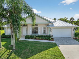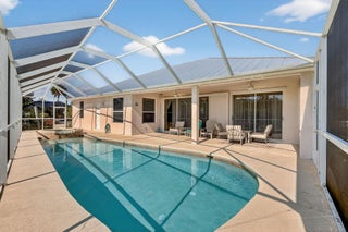 10 min to the beach! Must See Move in Ready 3/2/2 Pool home with '22 Metal Roof on a Cul De Sac .29 acre lot, No backyard neighbors. Desirable community with Community Dock on the Indian River Lagoon, Great for fishing, dropping in your kayak or you can bring you boat up to the dock for the day. Community storage subject to availability. Low $56 a month HOA, gated, pet community. The home features transom windows and high ceilings for lots of natural light. Big kitchen with custom high level granite counters and backsplash, Most appliances new '24/25. Both bathrooms have also have extensive custom granite work. Beautiful heated pool & spa with screen enclosure, New pool/spa heater & pump '25. Furniture can be left for buyer convenience or donated.