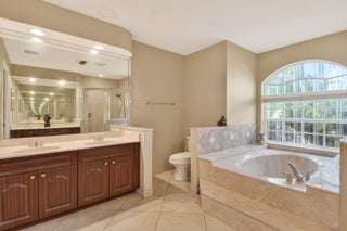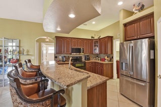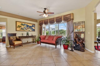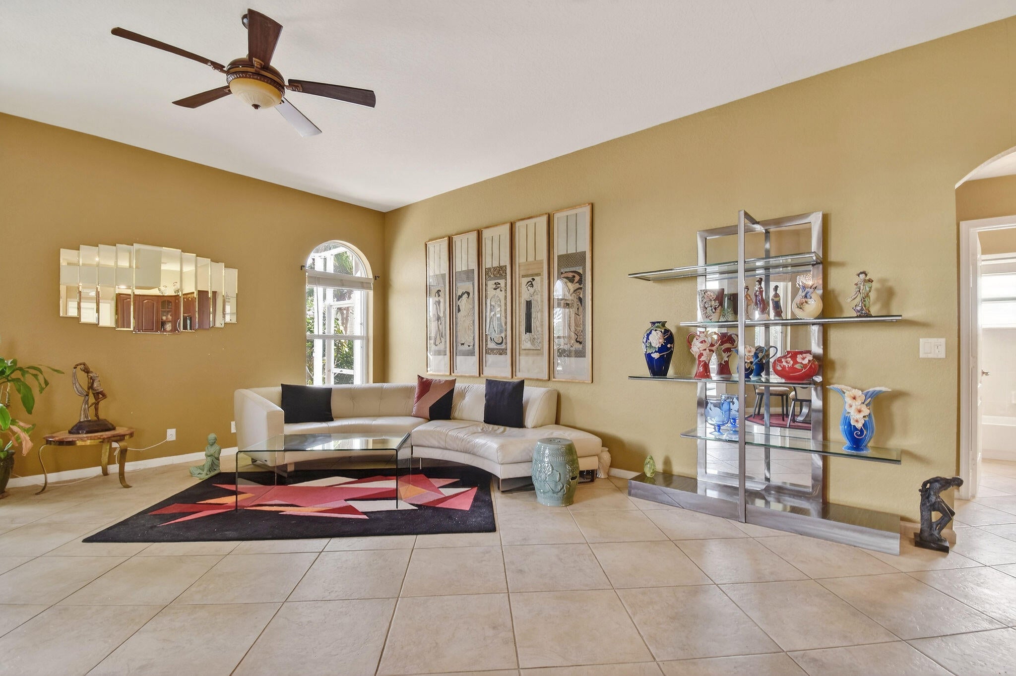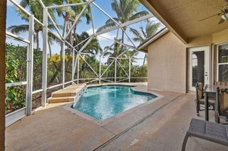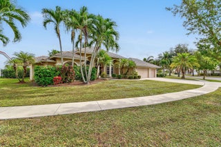 Welcome to this fabulous home in the highly sought after gated community of The Estates of Royal Palm Beach. 3 bedrooms plus library. 2 full baths. VERY RARE 3 CAR GARAGE WITH TRIPLE WIDE DRIVEWAY FOR LOTS OF PARKING. Private pool with full screen enclosure. Covered outdoor dining area. Formal living and dining rooms PLUS a large family room and breakfast area off the open kitchen which has a double oven, SS french door refrigerator, granite counters and a walk-in pantry. The Primary Suite has his and hers closets, French doors to the pool area, separate shower and jetted tub. Newer AC, water heater and LG washer and dryer. Accordian storm shutters.