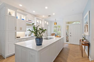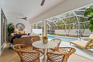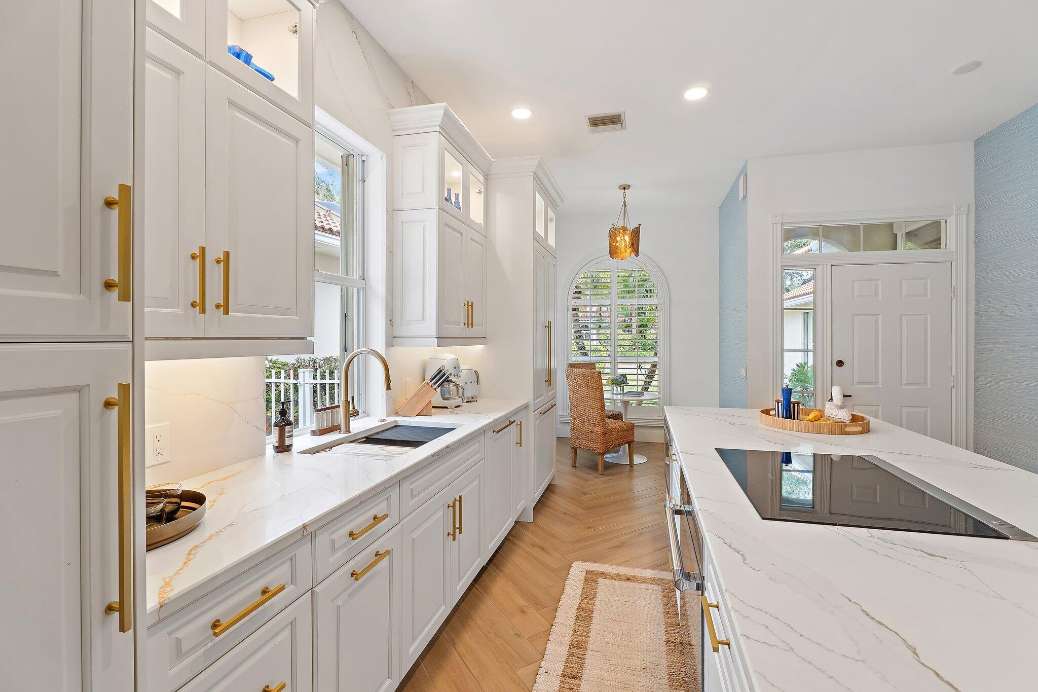 An exceptionally curated, design-forward residence in one of Palm Beach Gardens' most desirable gated communities.Step inside this meticulously renovated single-level home and experience a masterclass in coastal elegance, refined textures, and modern luxury. Every room has been thoughtfully transformed with designer finishes, custom millwork, and a sophisticated palette that blends organic warmth with elevated style.The main living area is anchored by soft neutral tones, woven textures, and natural light pouring through expansive sliders that open to the private screened pool terrace. A stunning herringbone pattern of wide-plank wood-look flooring flows throughout, leading to beautifully styled living and lounge spaces--each curated with intentional detail for comfort and effortlessentertaining. At the heart of the home, the chef's kitchen is a stunning showcase of craftsmanship: custom cabinetry with brass hardware, a massive single slab quartz island with waterfall edges, integrated appliances, illuminated display niches, and a breezy breakfast nook framed by arched windows and plantation shutters. The open flow leads directly to the dining area and great room, creating a seamless environment for gatherings both large and intimate. The primary suite is a serene retreat, featuring a customized walk-in closet and a spa-inspired bathroom worthy of a boutique resort. Blue scalloped tile, a sculptural freestanding soaking tub, warm brass fixtures, dual vanities, and an elegantly tiled walk-in shower create a space that feels indulgent, calming, and artfully designed. Two beautifully styled guest suites each offer distinct personalitylayered wallpapers, designer lighting, curated artwork, and timeless coastal accents. The accompanying guest bath continues the design story with vibrant florals, a fluted floating vanity, and an oversized emerald-tiled shower with skylight illumination. The Florida room blends indoor comfort with outdoor ease, framed by shiplap walls, warm textures, and views of the pool. Step outside to the private screened-in courtyard featuring a sparkling pool, lounge seating, tropical landscaping, and room to entertainall wrapped in complete privacy. Additional highlights include a beautifully finished two-car garage with epoxy flooring, plantation shutters throughout, new fixtures and hardware, upgraded trimwork, and meticulous attention to detail in every corner of the home. Perfectly located near world-class golf, upscale shopping, premier dining, beaches, and all that Palm Beach Gardens has to offer, 231 E Tall Oaks Circle delivers a rare combination of design, comfort, lifestyle, and turnkey livability.