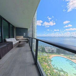 Corner residence featuring 3 bedrooms, 3.5 baths with sweeping, unobstructed water views. Fully finished with sleek porcelain flooring throughout and elevated with premium, contemporary finishes. Enjoy an open-concept living space and a chef-caliber kitchen equipped with Bosch and Sub-Zero appliances.Residents have access to unmatched, resort-style amenities including a boutique bowling alley, wine cellar and tasting lounge, billiards room, cigar lounge with private humidors, kids' multimedia game room, and a full tennis center with two lighted courts. Outdoor perks include grilling stations, a putting green, a bayfront park, marina access, and so much more.