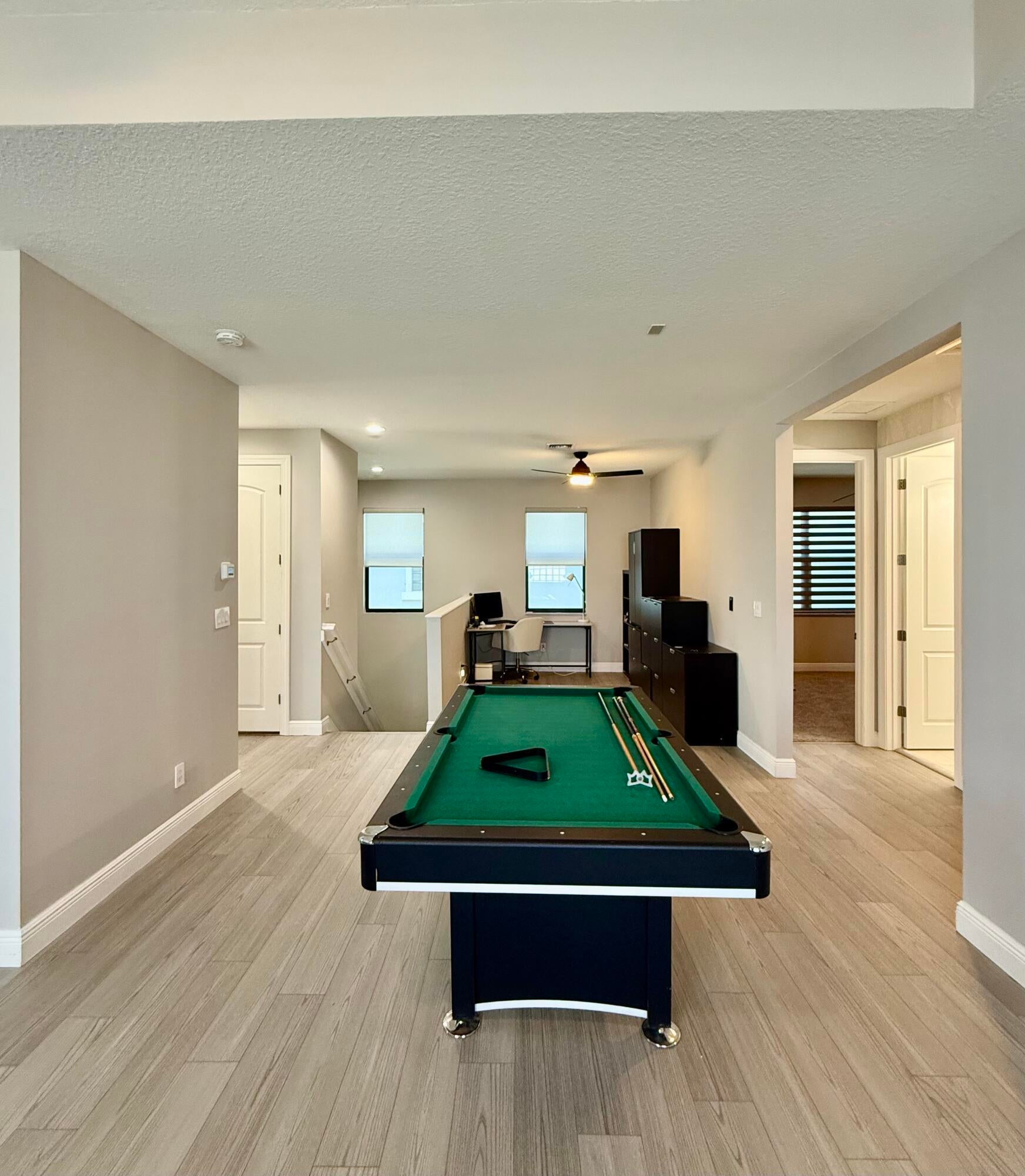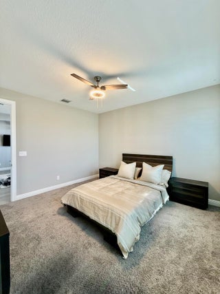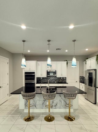 Stunning 5-year-old home in gated Coral Lago, recently renovated and perfect for large families. Master + office on the main floor, with 4 bedrooms and a loft upstairs--ideal for space, privacy, and plenty of storage. Features built-out closets, new laundry room, impact windows, security system & cameras. Backyard oasis offers palms, custom lighting, outdoor grill, and a heated pool with direct access to an oversized community green space. Beautiful, move-in-ready home. Easy to show!