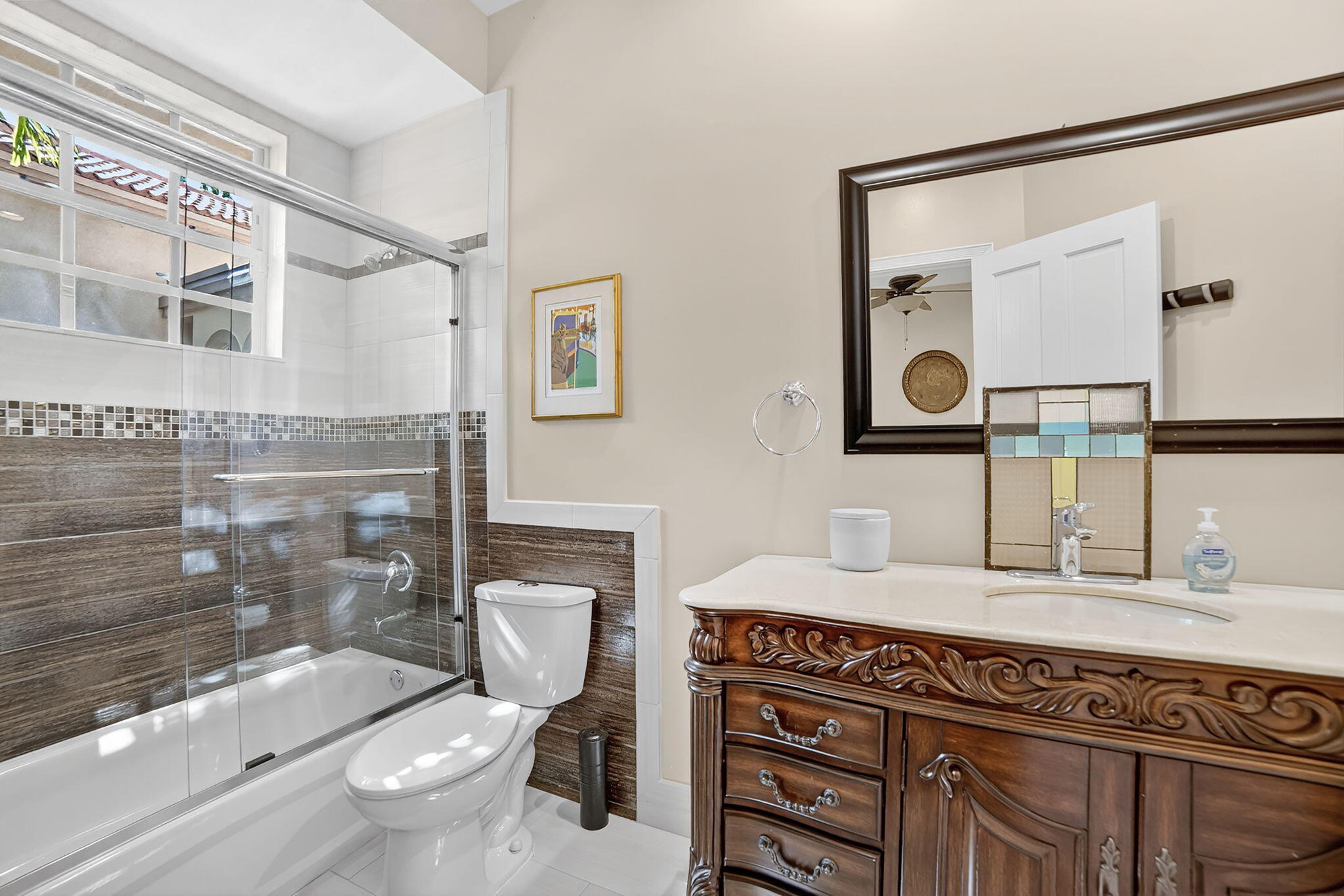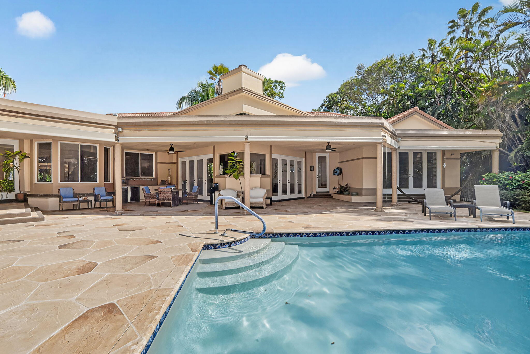 A rare South Florida treasure. This stunning one-story, 6 bedroom, 5.5 bathroom custom estate offers over 5,200 sq ft of living space and sits on just over 1 acre of pristine land with breathtaking lake views, located inside one of Coral Springs' most exclusive gated communities. Properties like this simply do not come to market often--this is a true needle in a haystack.Originally renovated in 2016 with high-end finishes throughout, this home combines architectural character with modern luxury. The entrance is one of the most unique features of the property: a front moat-style fountain and water feature with a beautiful bridge walkway leading to the main double-door entry. It creates an elegant and memorable first impression unlike anything found in today's cookie-cutter communities Inside, the home features expansive living spaces finished with marble flooring throughout the main living areas and Brazilian cherry wood floors in all bedrooms. The updated kitchen includes wood cabinetry, granite countertops, and stainless steel appliances, while all bathrooms have been tastefully renovated with marble finishes and modern vanities. Oversized windows fill the interior with natural light and highlight the stunning lake views. The layout offers exceptional flow, functionality, and privacyperfect for both everyday living and large-scale entertaining. Spacious formal and informal areas, a generous dining room, and multiple living spaces allow for effortless hosting and comfortable family living. Step outside to your private resort-style oasis. The expansive oversized patio provides ample room for outdoor dining, lounging, and entertaining. The large lakefront pool is ideally positioned to capture spectacular sunsets over the water. With more than an acre of land, the property offers unmatched privacy, room to play, space for pets, and endless opportunities to customize the outdoor environment. Additional highlights include a 2013 roof with 16 years remaining on a transferable warranty, a spacious driveway, multiple outdoor living spaces, and the rare combination of land, water views, and a true custom-built single-story estateall within a secure and highly coveted gated community. This home represents an extraordinary opportunity to own one of the last true custom estates in South Florida on over an acre with both privacy and panoramic lake views. Ideal for families, luxury buyers, or anyone seeking a home that stands apart from the rest. Truly one of a kind.
