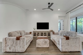 With more than 5,100sqft (5+den/5.1/3) of elevated, upgraded living space, this home delivers comfort & sophistication. A 22-ft foyer w/custom wood-plank ceiling detail opens to bright, open spaces finished w/porcelain tile, impact windows & upgraded lighting. The chef's kitchen includes stacked cabinetry, quartz countertops, a 12-ft island w/ 3-in waterfall, gas cooktop & a custom walk-in pantry. Each bedroom offers an en-suite bath & walk-in closets. Additional features include Laundry rooms on 1st & 2nd floor, a $9K custom primary closet, an expansive upstairs club room w/large balcony & an enclosed downstairs patio with Sonos. Location matters! Enjoy Alton's amenities: Resort-style pool, state of the art fitness center, tennis, pickleball & shopping/restaurants just a short walk away.