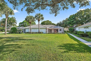 Welcome to your dream oasis, a charming 2-bedroom, 2-bathroom villa that seamlessly blends modern comfort with the tranquility of outdoor living. Nestled in the heart of Palm Beach Gardens, this villa is a sanctuary of relaxation and style. As you step through the front entrance, you are greeted by an open-concept living space with high vaulted ceilings. The kitchen, living room & dining room are bathed in natural light, creating an inviting atmosphere for both relaxation & entertainment. The living room includes a large built-in for all your storage needs. This unit has NO CARPET. The kitchen, equipped with stainless steel appliances and stylish granite countertops, is a culinary haven for those who love to whip up delicious meals.The villa boasts two spacious bedrooms, each offering a haven of serenity. The master bedroom features an ensuite bathroom, creating a private retreat for rest and rejuvenation. The 2nd bedroom is equally comfortable, with easy access to the stylishly appointed 2nd bathroom. One of the highlights of this villa is the expansive outdoor living space. Step through sliding glass doors onto a large screened-in lanai that seamlessly connects the indoor & outdoor areas. Here, you'll find a cozy lounge area where you can unwind with a book or enjoy the company of friends and family. The lanai overlooks a beautifully landscaped garden, providing a picturesque backdrop for your relaxation. With the gentle breeze and the sounds of nature in the background, this outdoor screen creates a truly magical experience. Whether you're sipping your morning coffee on the lanai or hosting a dinner party under the stars, this 2-bedroom, 2-bathroom villa is a haven of comfort & tranquility. Amenities include a heated community pool, well-lit sidewalks and on-site property manager.