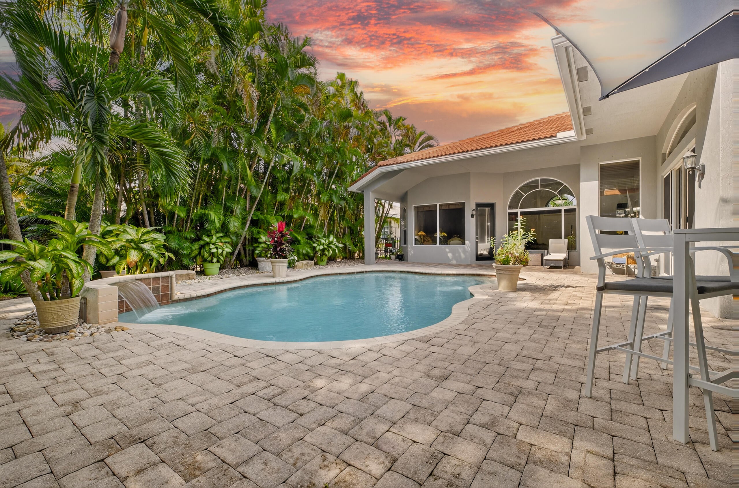 Welcome to the ultimate South Florida lifestyle, offering warm weather, low taxes, and the charm of Palm Beach's best-kept secret. This meticulously maintained, CBS-constructed home provides single-level living at its finest. Spanning 2,774 sq. ft, the residence features a bright, open layout with vaulted ceilings and pristine tile flooring throughout. The functional 3-way split floor plan ensures maximum privacy, complemented by a spacious primary suite featuring two walk-in closets. Peace of mind is guaranteed with a new concrete barrel tile roof (installed in 2022) and included storm shutters. The private backyard is an entertainer's paradise, showcasing an oversized freeform pool and an expansive paver patio.