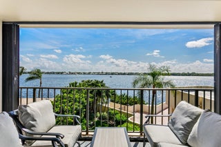 Don't miss this stunning 2 bedroom 2 bath split floor plan condo. 1 walk in shower and 1 shower tub combo. Custom closet doors. 24x24 inch tile floors throughout .Desirable end unit with unobstructed views of Old Port Cove Lagoon, Marina, Intracoastal and Lost Tree Village. 250 Sq, Ft. covered balcony with access from every room. Two mile walking path along the water. Fitness center. sauna.24/7 manned security gate. Restaurant on premises.