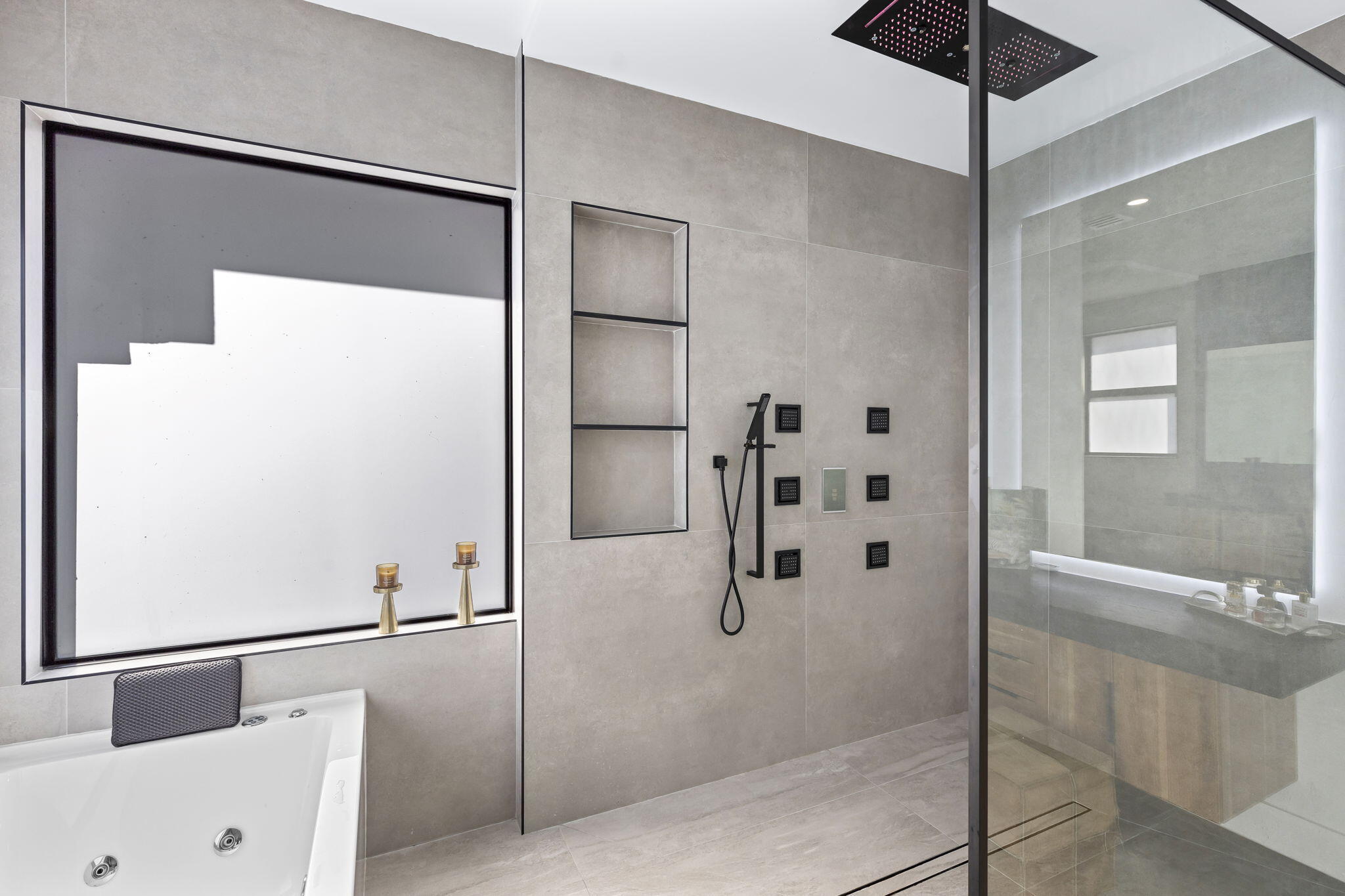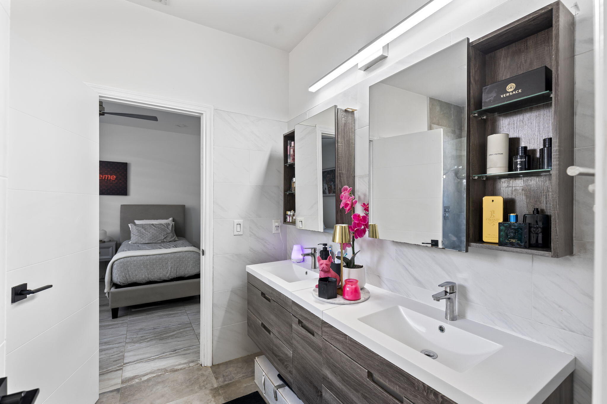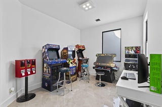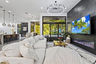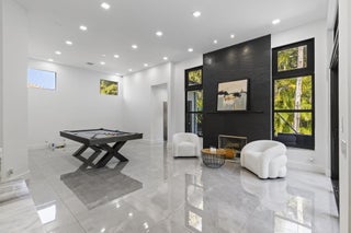 A Masterpiece of Modern Luxury! This exquisite home is a true standout, boasting premium upgrades and thoughtful details throughout. Step through the frosted entrance glass door and into a world of elegance. With impact windows and doors, glowing turf stone pavers in the front and rear, and LED accent lights, this home exudes curb appeal day and night. Outdoor Oasis: Entertain and relax in your personal paradise, featuring an outdoor shower, two gas-powered fire pits, a hot tub spa, and a projector screen for outdoor movie nights. The side-load garage and durable metal roof complete the exterior's sophisticated design.Gourmet Kitchen:The chef's dream kitchen boasts:Custom exotic marble counters and backsplash with LED lighting.Double islands featuring continuous waterfallSoft-close cabinets and upgraded custom lighting enhance the space's modern feel Luxurious Primary Suite: Indulge in the grandeur of the primary suite, featuring: Frosted 8ft entrance glass door and frosted glass barn closet doors. Custom closets and electric shades for ultimate comfort. Tray ceilings with LED lighting for ambiance. The spa-like bathroom includes floating dual sinks, a custom vanity, a stand-alone bathtub, and a large frameless walk-in shower with European drain and LED spa faucet Living and Family Areas: Both living and family rooms feature built-in gas fireplaces and large impact glass sliding doors that overlook the pool. LED hi-hat lighting enhances the modern ambiance. A dedicated office space, perfect for working from home or a private study Game Room: A vibrant entertainment space with additional LED hi-hat lighting, ideal for hosting guests or relaxing with family. Guest Bedrooms and Bathrooms: Guest Bedroom 1 and 2 share a Jack and Jill bathroom with dual floating sinks, frameless shower door, and European drains. Guest Bedroom 3 features frosted glass closet doors and hi-hat lighting custom wave tile and modern fixtures. Guest Bedroom 4 and additional guest spaces offer frosted glass closet doors and hi-hat lighting Guest Bathroom 3 features custom wave tile floating sinks , frameless shower doors and European drains Cabana Bath: Accessible from the pool, the cabana bath is designed with a frosted glass entrance door, frameless shower, European drain, and floating sink Laundry Room: Functional and stylish with a custom tile sink, additional cabinets, and a frosted glass linen closet. Additional Highlights: This home also includes surround sound throughout the tropical oasis in the pool area , showcasing smart home integration and luxurious living. Don't miss your opportunity to own this one-of-a-kind property in Miramar! Schedule your private showing today. All measurements are approximate and buyer to verify exposure