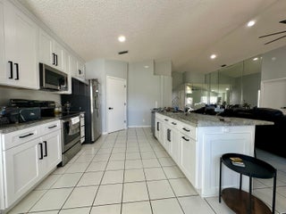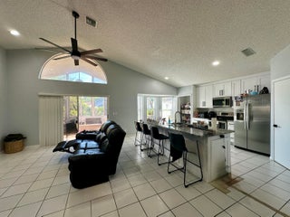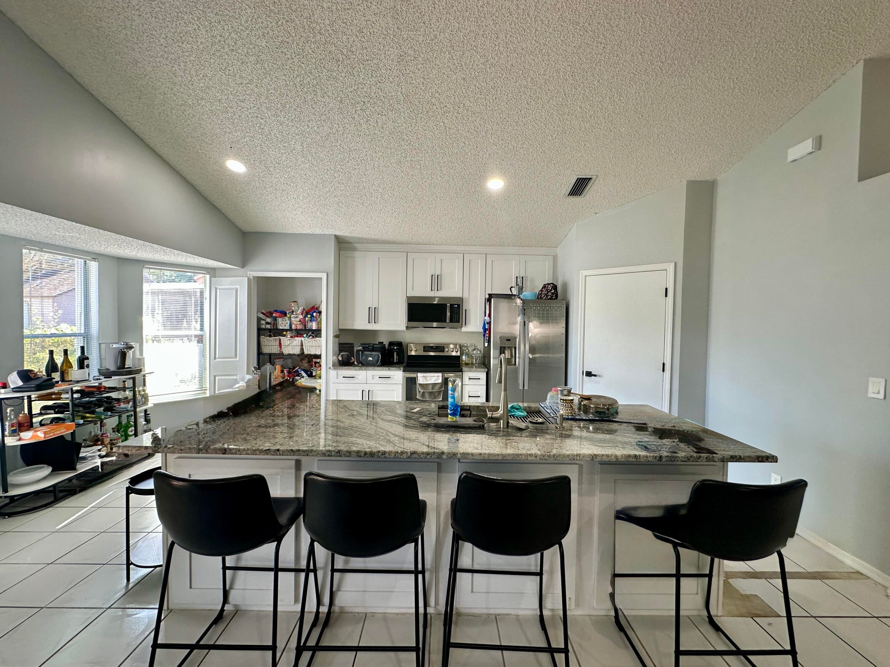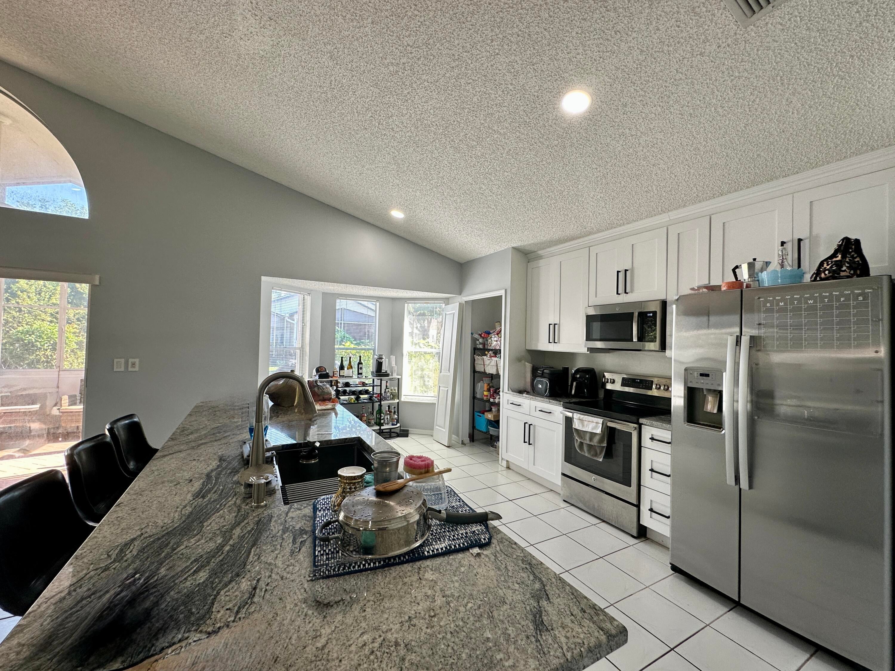 Single Family Home in River Bridge; a Guard Gated Community with all the Amenities you could hope for and a LOW HOA Fee: Clubhouse, Pool, Spa, Tennis, Basketball, Playground, and Sidewalks lined with Mature Oak Trees. This 3/2 home(used as a 2/2 plus Den) has an amazing Kitchen Remodel, including White Wood Soft Close Cabinets, 42'' Uppers, Stainless Steel Appliances and Granite Tops with Large Island, completed in late 2023, along with Interior Paint, New Ceiling Fans and New Door Hardware throughout. The home has Vaulted Ceilings, Tile Throughout, Recessed Lighting, an Enclosed Sun Room and a 2 Car Garage. Pets Welcome.