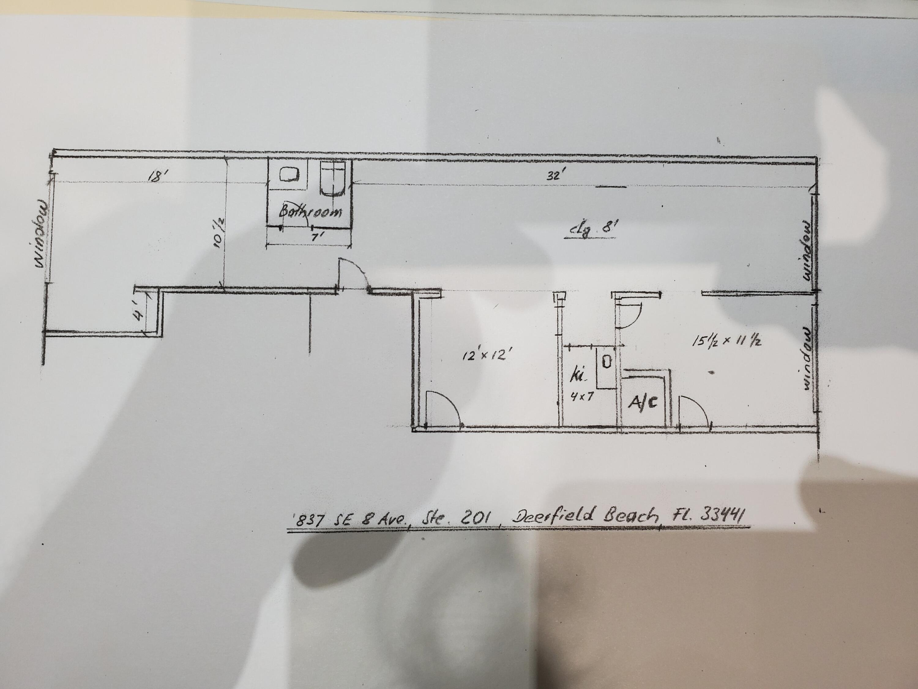 1,150 sqft on second floor, 4 rooms plus restroom, kitchenette, laminate flooring, central A/C, Zoning B-1 ;