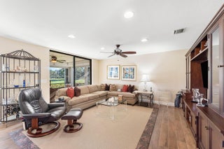 Move-in ready luxury in Hunters Run Country Club! This remodeled first-floor corner condo in Eastgate offers stunning panoramic views of golf and water from nearly every room. Porcelain wood-look tile flows through the main living areas, complemented by plush, premium carpeting in both bedrooms. The updated eat-in kitchen boasts custom cabinetry, granite countertops, stainless steel appliances and front-loading washer and dryer. The sun-filled living and dining areas open to a flexible den, easily converted to a third bedroom or private office. Enjoy indoor-outdoor living on the extended screened lanai overlooking the water and golf course, plus an open-air side patio perfect for outdoor dining or parking your golf cart. The Eastgate pool and clubhouse are just steps from your front door!The luxury lifestyle can be yours at Hunters Run Country Club. Featuring 54 holes of championship golf (with a brand new East Course designed by Kip Schulties), 18 har-tru tennis courts, 12 pickleball courts, resort-style clubhouse and pool, salon & spa, state of the art fitness center, six dining venues, and so much more. New Racquet Sports Center breaking ground in 2026! Mandatory membership.