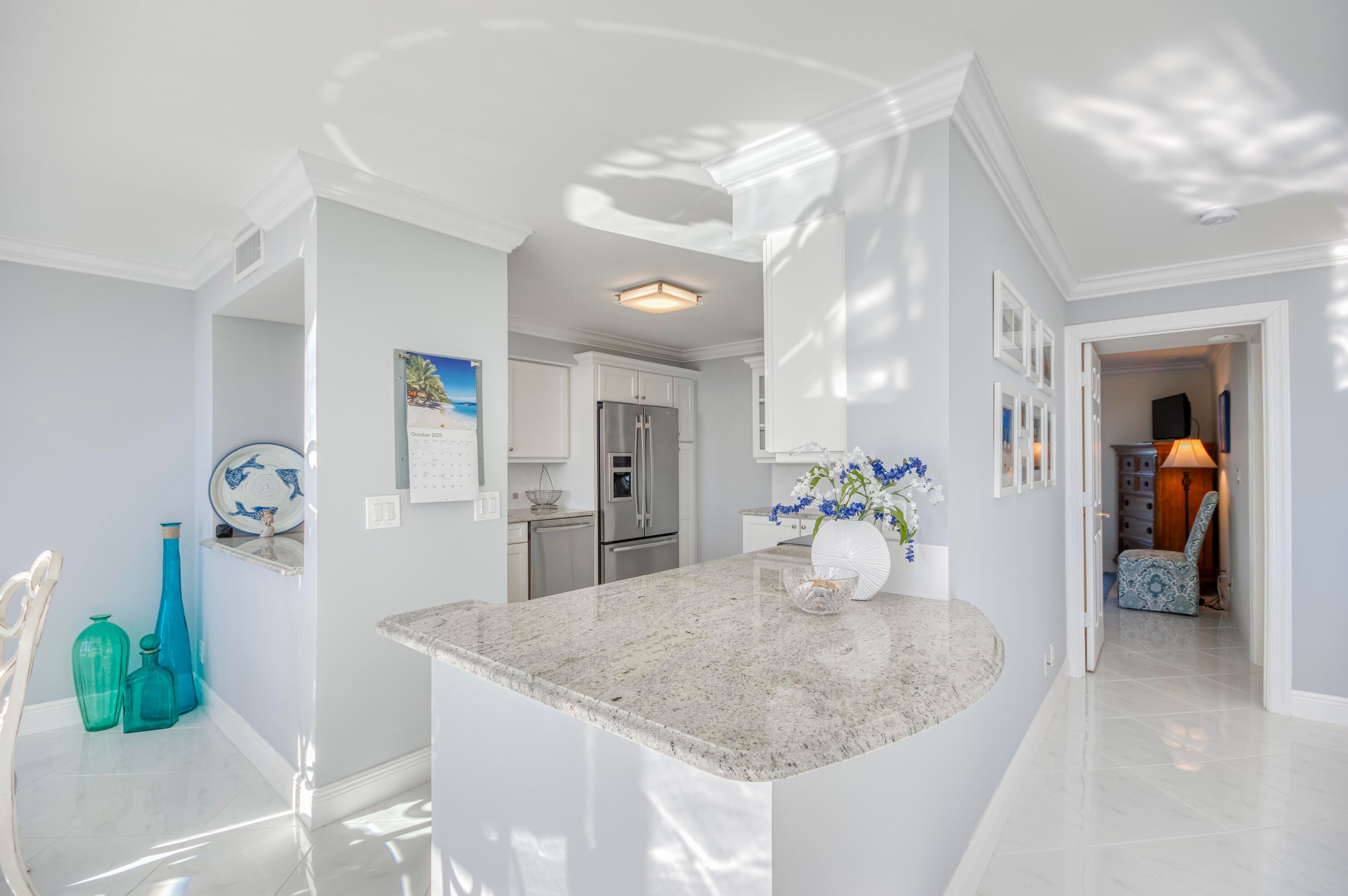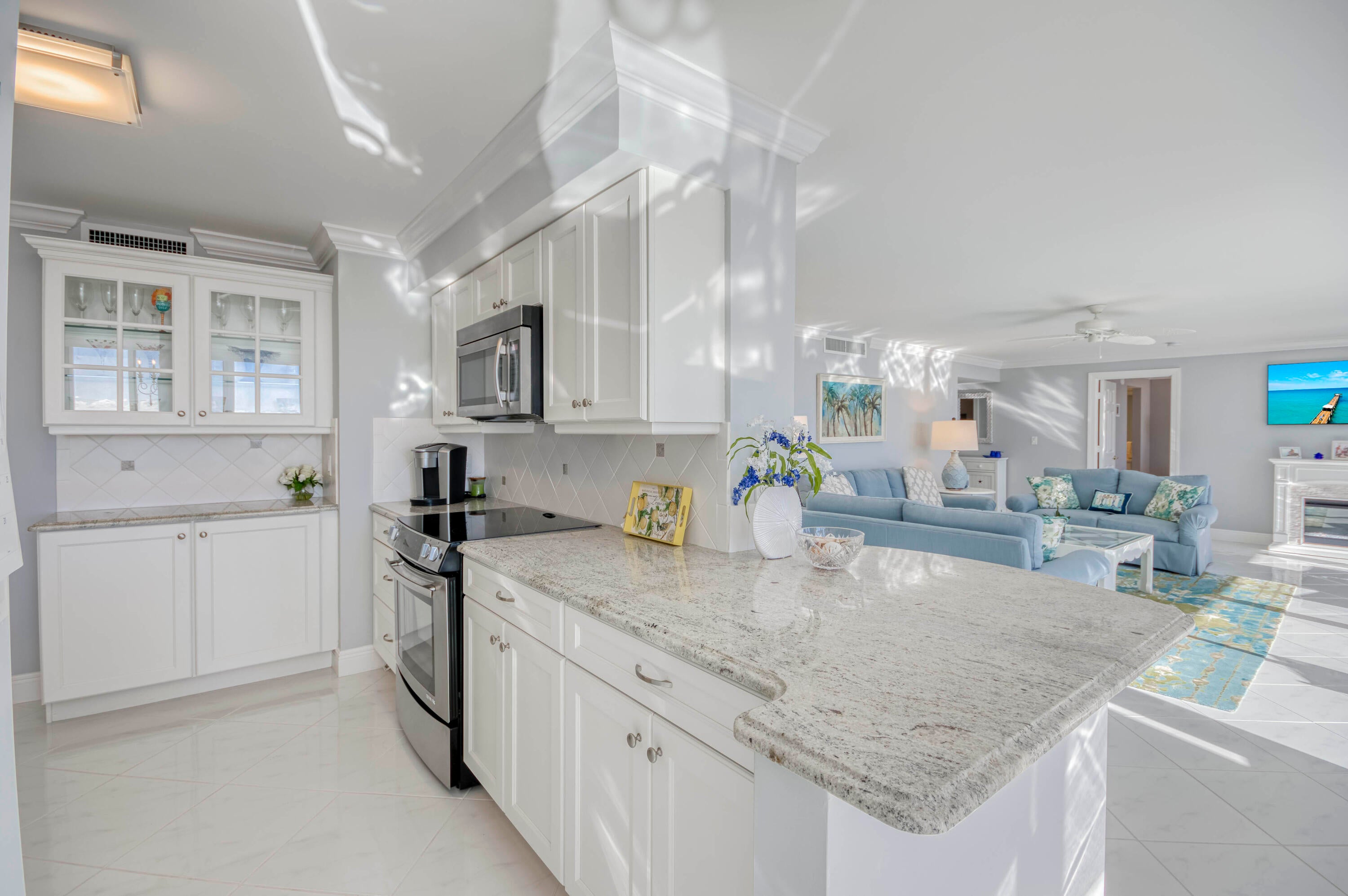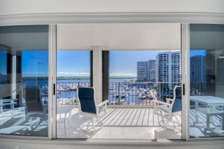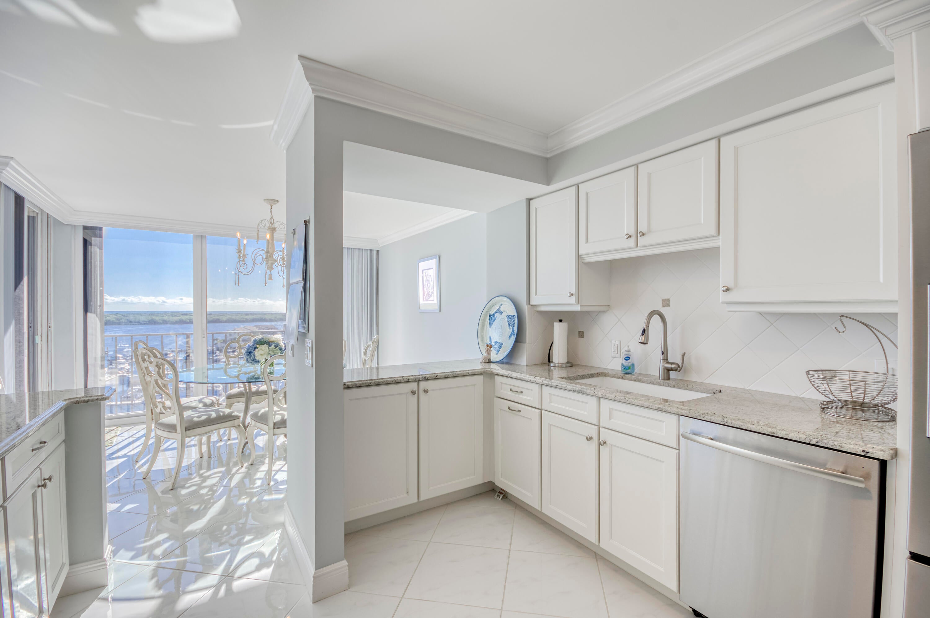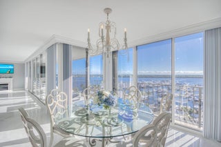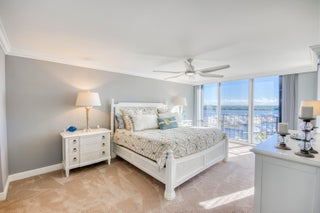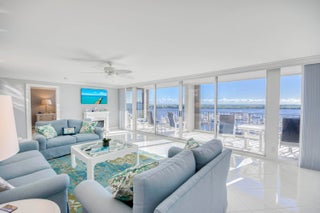 COASTAL LIVING AT ITS FINEST! Enjoy breathtaking water views from this fully renovated and furnished 3BR/2.5BA corner residence. The gourmet kitchen features Mid Continent Cabinetry, Jenn-Air appliances, granite counters, and a touchless faucet. Bright living and dining areas showcase sweeping marina and ocean views. The primary suite offers a custom walk-in closet and en-suite bath, with two additional bedrooms sharing a stylish Jack & Jill. Sip morning coffee on your balcony at sunrise or unwind with sunset cocktails. Crown molding, 6-panel doors, and in-unit laundry complete the home. Resort-style amenities include heated pool, fitness center, walking trails, and on-site restaurant and marina. A SOPHISTICATED COASTAL RETREAT, THESE VIEWS WILL TRULY TAKE YOUR BREATH AWAY!