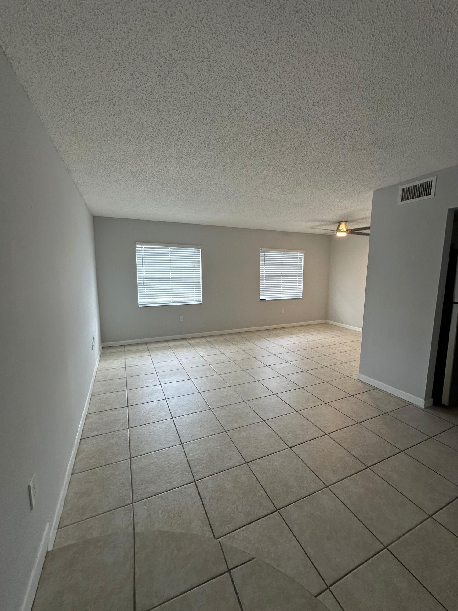 Spacious and bright second floor corner one bedroom apartment, with Tile floors throughout the apartment. Includes stackable washer/dryer inside unit. Nice kitchen granite countertops black glass backsplash and new stainless-steel appliances. Granite bathroom counter. window blinds and fans. Water and Sewer included in Rent. Plenty of parking spaces available.