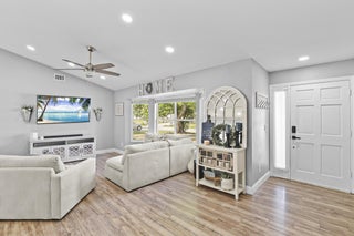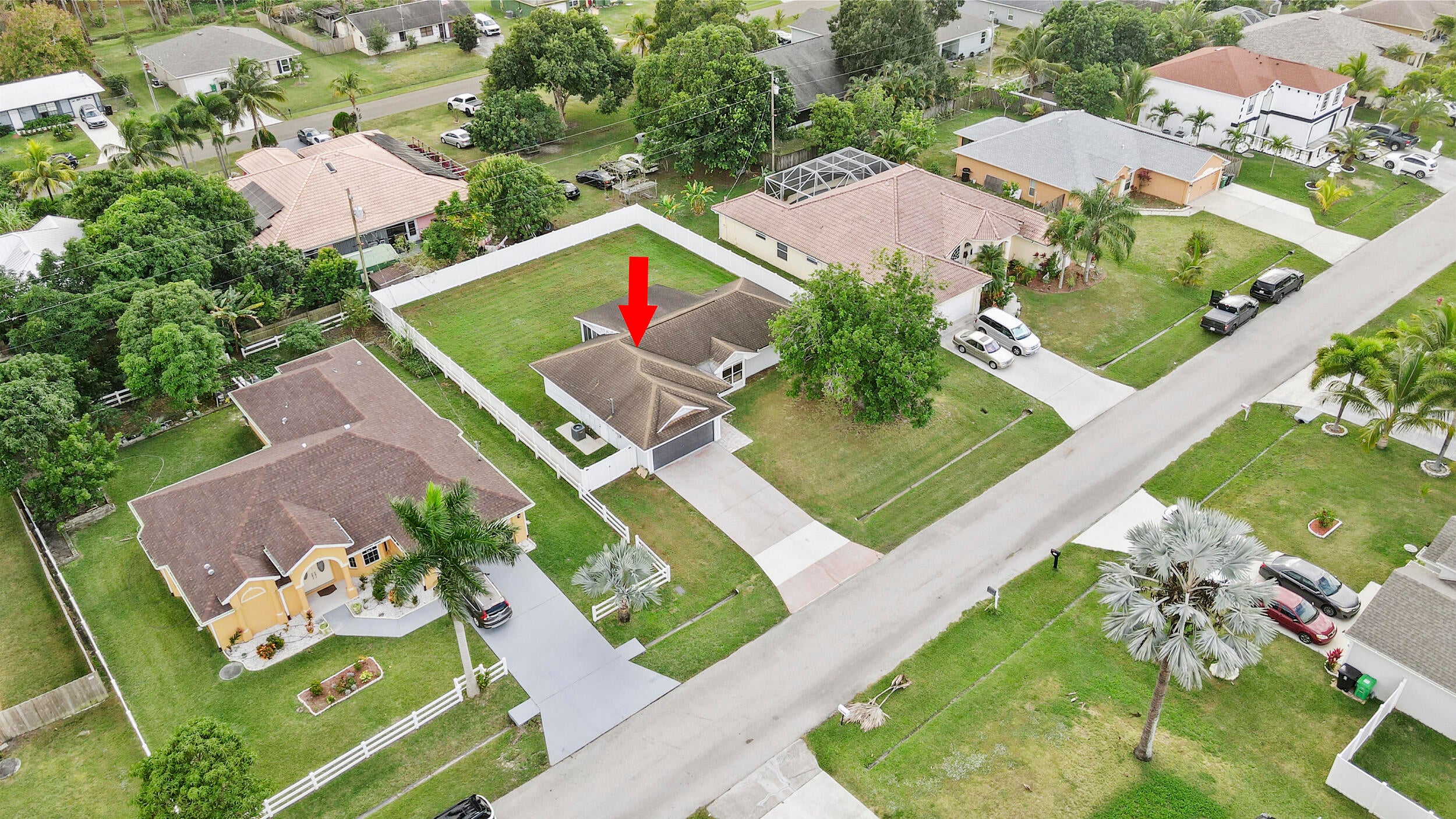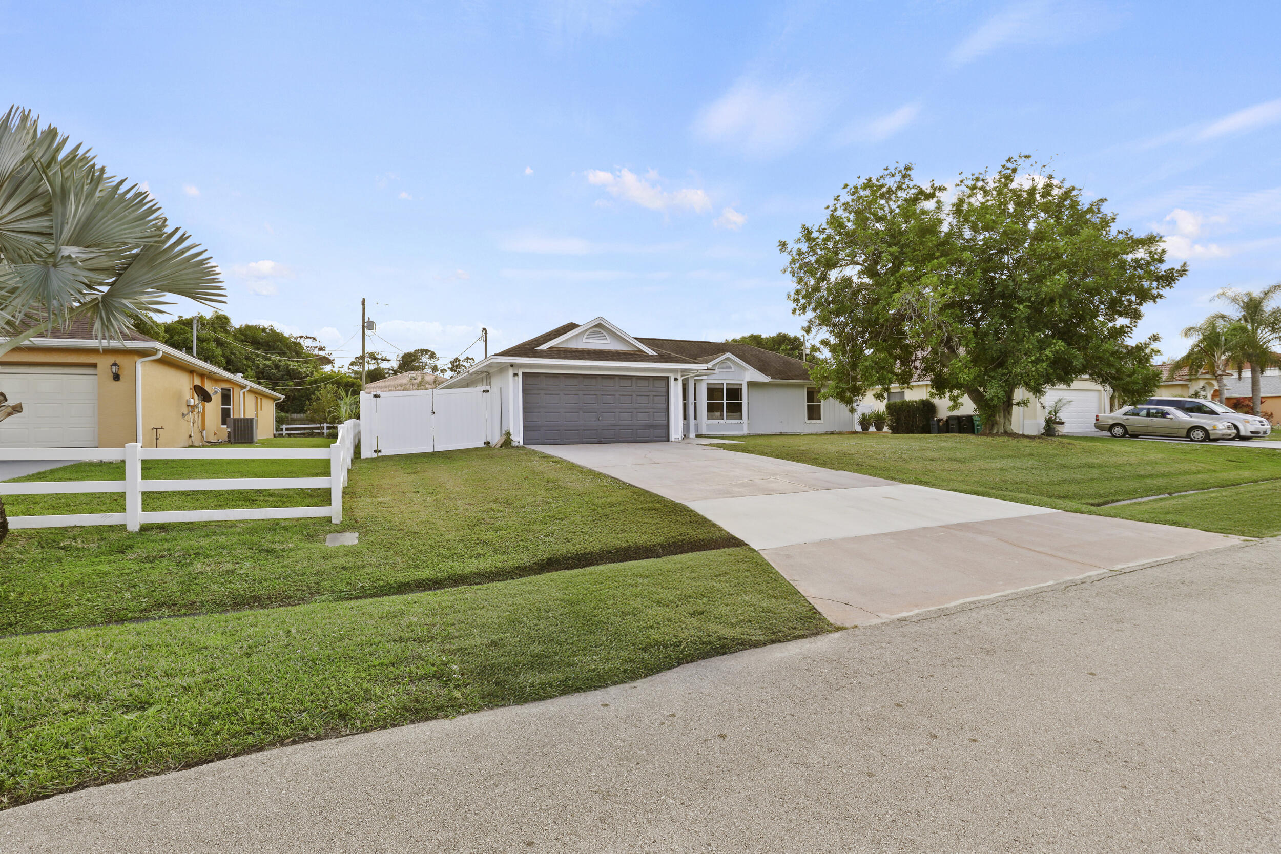 This well-maintained 3-bed, 2-bath, 2-car garage home is move-in ready and ideally located in a highly desirable Port St. Lucie neighborhood just minutes from the dining, shopping, and entertainment of Tradition. Step inside to a bright, open-concept living and kitchen area with a split floor plan for comfort and privacy. A window-lined sunroom fills the space with natural light--perfect for morning coffee or relaxing afternoons. Major upgrades include a brand-new roof being installed, 2023 AC, new water heater, and newer PVC fence. The large, fully fenced backyard offers plenty of space for kids, pets, or a future pool. Don't miss this hassle-free home!