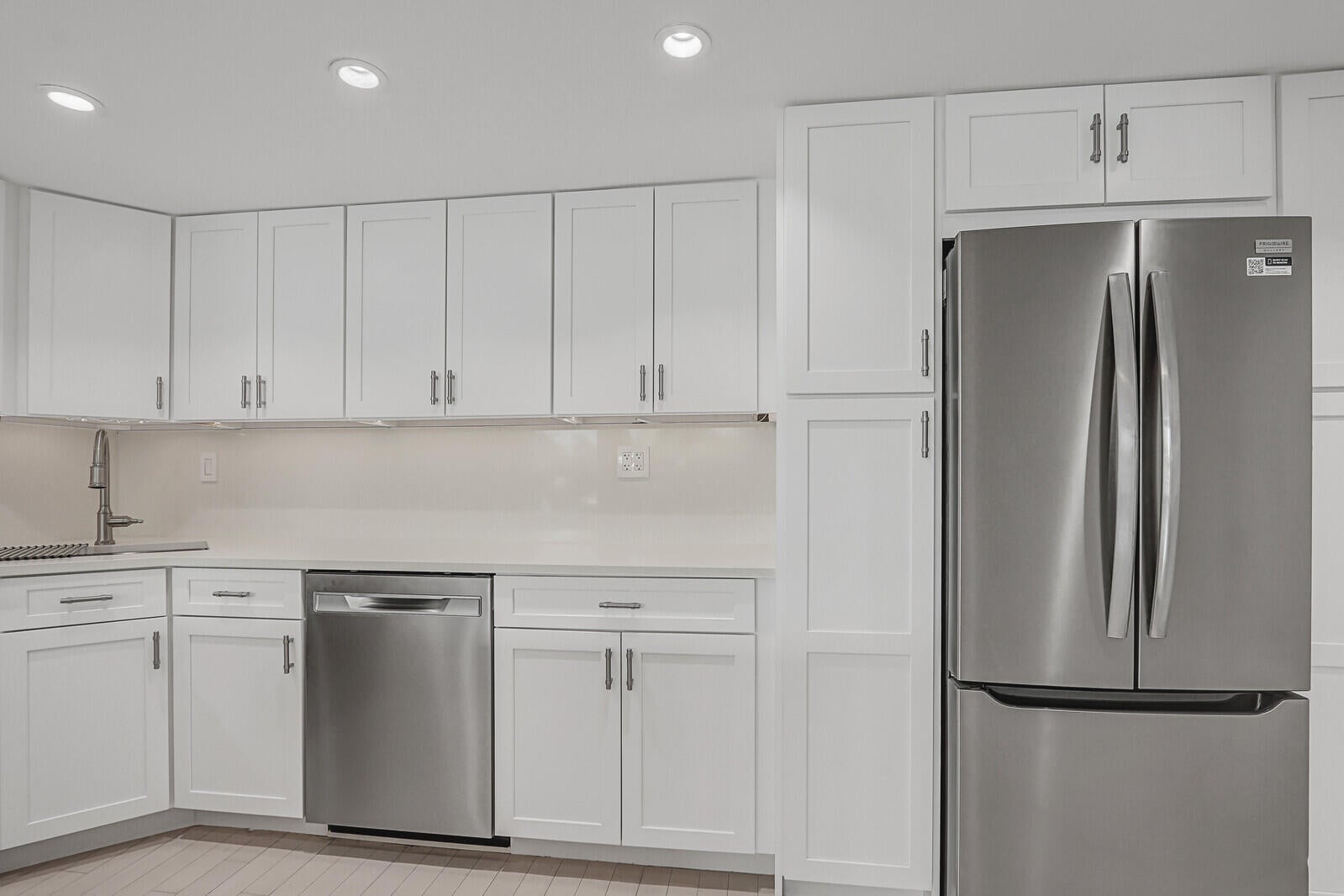 SUPERIOR IN-TOWN LOCATION dictates the desirability of this boutique mid-century with infrastructure improvements of new roof, new east and west facing roof decks, new lobby and hallways and public spaces. FRESH FRESH FRESH top to bottom!!Unit #3F is a third floor 2 bedroom, 2 bath unit located on the sunny and breezy NE corner with a full wraparound balcony overlooking the exquisite lush estate properties of adjacent Dunbar Road. This unit has been FULLY renovated with a gorgeous new open kitchen, brand new stainless appliances, updated baths, smooth ceilings and full impact glass. It's READY TO GO! This unit has enjoyed an exceptional rental history and 223 Atlantic offers IMMEDIATE availability for rental following sale with TWO rentals per year. Excellent mixed use possibilities!One garage space and storage. NO assessments, flush financials and low monthly fees for the island. Walk to beach, intracoastal bike path, shopping at "The Royal", dining, HAPPY HOURS and Publix. Unbeatable location! It's a MUST SEE!