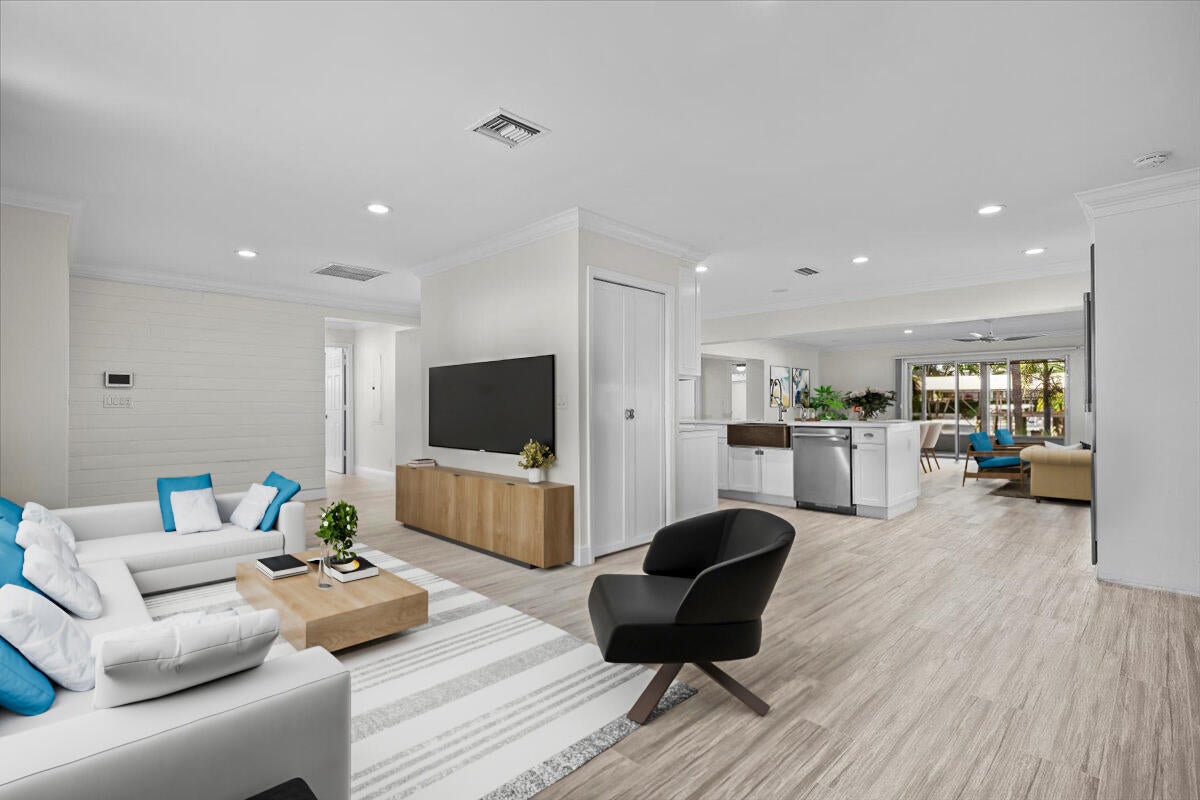 Available annually unfurnished or seasonally furnished. Live the salt life in this beautifully appointed 4-bedroom, 3.5-bath waterfront home with everything you need for the ultimate coastal lifestyle. Boaters will love the private dock with 80 feet of water frontage, direct Intracoastal and ocean access, and a covered 18,000 lb boat lift--no more storage fees! With no HOA, you'll enjoy true freedom and flexibility. This single-story home features an open floor plan with a sleek, high-end kitchen offering ample counter space--perfect for cooking, entertaining, or simply enjoying the canal view. Step outside to a spacious screened-in patio and your very own authentic tiki hut with a built-in bar--ideal for relaxing or hosting guests.The home also includes a 2-car garage with an electric car charger, a semi-circle driveway with plenty of space for extra parking, outdoor gear, or hobbies, and a laundry room with a full-size washer and dryer. Full hurricane impact windows throughout and a powerful 20KW whole house generator provide added comfort and peace of mind. This is more than just a rentalit's your chance to enjoy waterfront living at its best.
