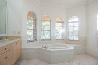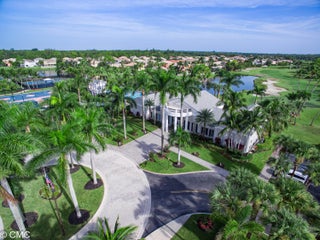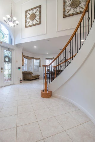 Roof 2025! Enter through double stain glass front doors to a soaring 2 story foyer & grand spiral staircase. This 4 bedrm 4 bath home also has formal living and dining room. The spacious family room has a triple slider out to the screened pool and patio. The large island kitchen has plenty of counter space, huge walk-in pantry, breakfast area, double oven and cooktop. There is 1 bedroom and full bath downstairs making it a great option for guests or in-laws. New flooring in the living and dining room. Stairs flooring also updated as well as the 2nd story bedrooms. Master suite boosts of a sitting area, den/office space, walk-in closet with custom shelving. There is a dressing area that leads into the double bathroom- 2 spacious vanities and sinks, 2 toilets! large walk thrushower between the 2 bathrooms and a jetted soaker tub! The master suite and den/office have sliders out to a balcony where you can enjoy beautiful sunsets within the 2 story screen enclosure. Downstairs on the enclosed patio you can enjoy swimming in your private pool. Have some fun grilling and cooking in the outdoor kitchen which has a grill, side burner, sink and refrigerator. Golf and lake views. This home will save you money on your electric bill with solar heater for the house hot water. Sturdy CBS construction all the way to the roof with poured concrete 2nd floor. Brand new roof! Accordion shutters upstairs make hurricane prep easy. Whole house water purifier. Built-in speakers in family room. HOA includes expanded cable with DVRs, high speed internet, the use of the resort style pool and clubhouse, tennis & basketball courts, indoor gym, kiddie pool, & playground.