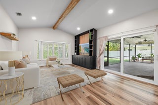 Brand new metal roof and gutters (fully paid by seller and to be installed after closing), impact windows and doors, a 2025 heated saltwater pool and spa, and a fully fenced backyard--this stunning 3-bedroom, 2-bath single-family home in the gated community of Frenchmen's Landing delivers immediate value and peace of mind from day one.This beautifully updated residence offers an open-concept layout with vaulted ceilings featuring decorative beam detail, luxury vinyl flooring, and a custom built-in media wall that anchors the main living space with both style and function. The chef's kitchen showcases timeless shaker cabinetry, a spacious quartz island, Samsung stainless steel appliances, designer pendant lighting, and a striking custom sandstone archway.Designed for effortless entertaining, the home also includes a separate wet bar and a dedicated dry bar with dual wine coolers for hosting or everyday enjoyment. Step into your private backyard retreat complete with a heated saltwater pool and spa (2025), travertine paver deck, lush tropical landscaping, premium Montana Rainbow rock accents, and a covered, screened lanai. The fully fenced yard with white vinyl privacy fencing and gated access on both sides offers ideal space for pets, play, and privacy. Additional highlights include Hardie board siding, plantation shutters, a new water heater (2024), A/C (2020), and an air-conditioned two-car garage with an insulated garage door and attic space. Frenchmen's Landing is a gated community offering tennis courts, a basketball court, neighborhood park, and gazebo. Ideally located just minutes from Trader Joe's, Whole Foods, The Gardens Mall, Downtown at the Gardens, Carmine's, OrangeTheory Fitness, Life Time Fitness, and the PGA Boulevard corridor with easy access to I-95 and the Florida Turnpike, this move-in-ready home delivers the perfect blend of lifestyle, luxury, and location in one of Palm Beach Gardens' most sought-after communities.
