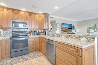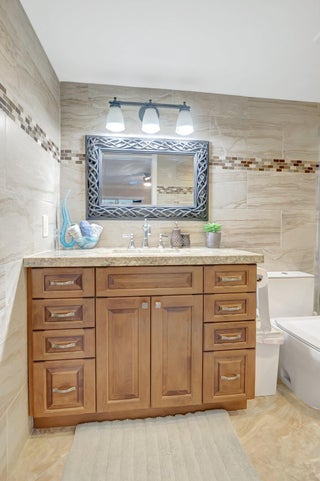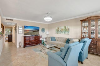 Beautifully RENOVATED CONDO in the highly sought-after Richmond F building of 55+Century Village East. Move-in-ready two-bed, two-baths condo features an open floor plan with an exceptional kitchen offering two cooking areas, two sinks, granite counter tops, high-end appliances, wood cabinetry, tile flooring & recessed lighting. Bathrooms are updated with granite-topped vanities & elegant tiled showers. Enjoy peaceful views from both bedrooms which overlook the back patio. Furniture included. This is a turn-key spacious condo for resort style 55+ living! Century Village is active & vibrant! Amenities include clubhouse, theater/shows, pool/spa, fitness center, pickleball, tennis, restaurant, clubs, courtesy bus & more. CV is close to beaches, airports & restaurants.