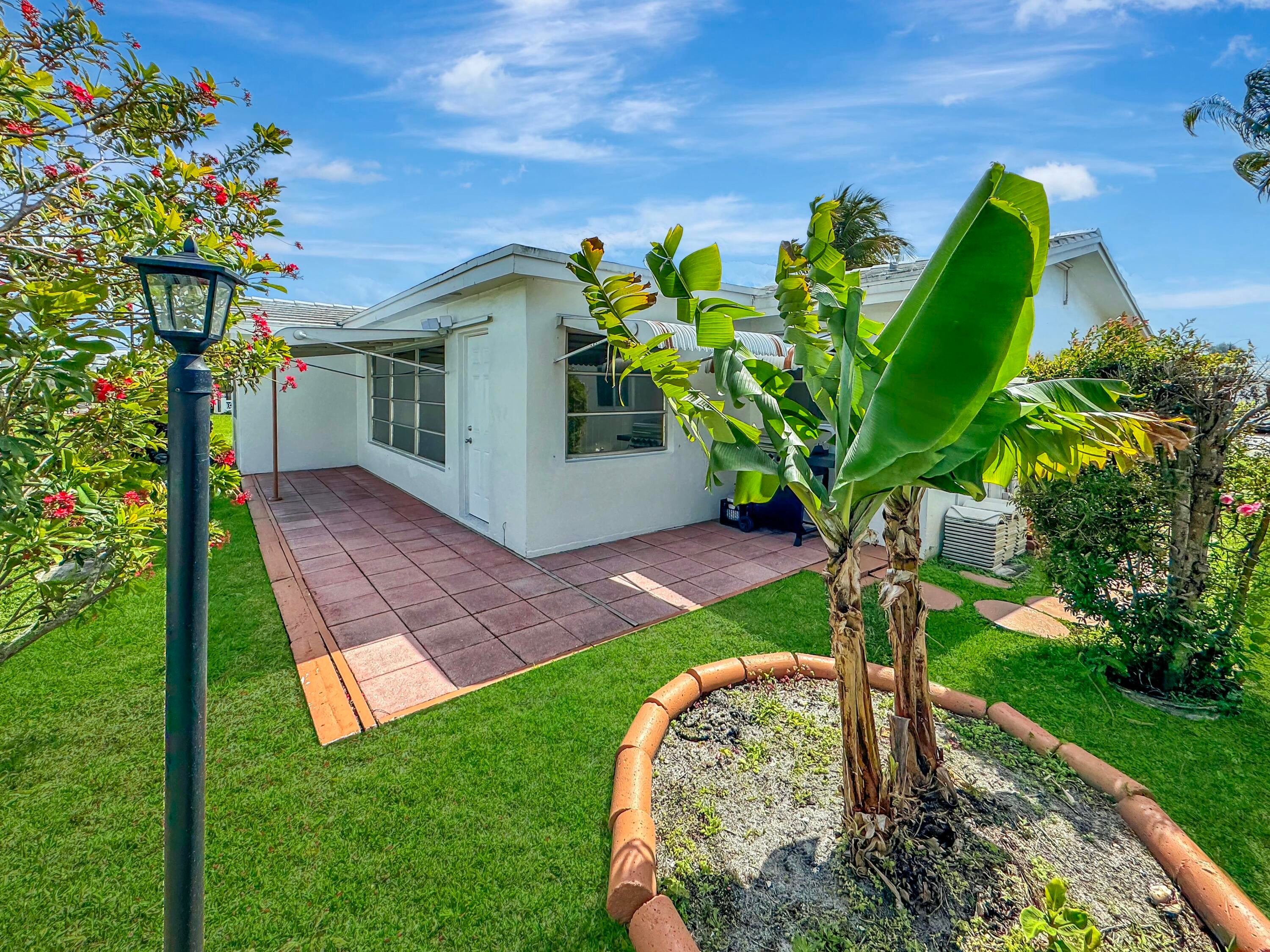 Spacious home in Leisureville. Discover this magnificent concrete home model with land, located in a 55+ community in Leisureville. With a roof redone in 2019, this home offers a garage, parking space for up to 4 cars, and a large covered sunny patio, perfect for relaxation. A large kitchen and an open living room leading into the Florida room create a bright and welcoming living space. This community provides access to a 9-hole (Par 3) golf course, two clubhouses, two heated pools, a sauna, billiards, petanque, and much more. Minimal fees of $298.00 per month cover water, lawn maintenance, herbicides, as well as exterior house painting and roof maintenance. Only 15 minutes from Florida's beautiful beaches. Don't miss this unique opportunity !