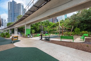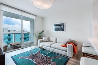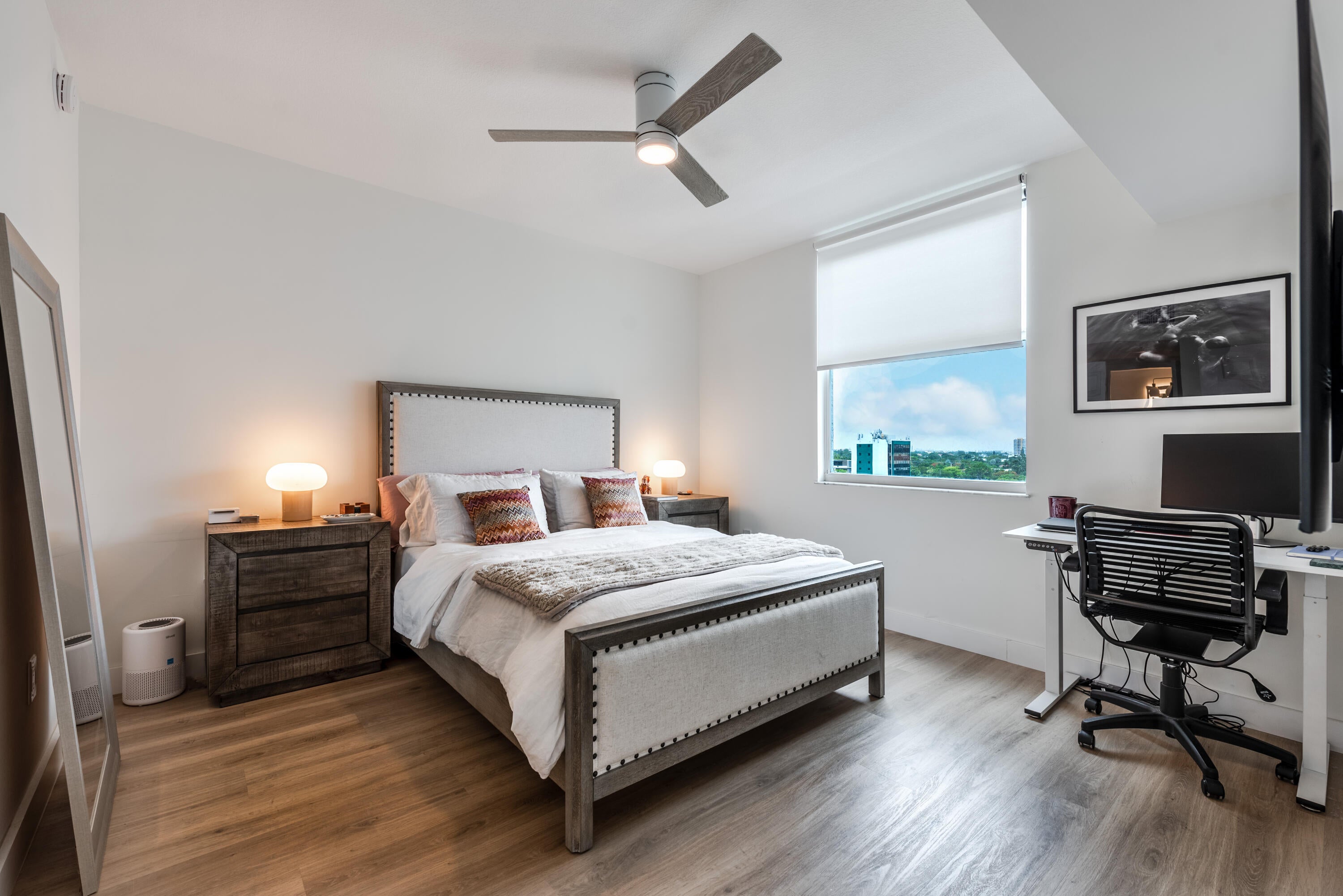 2 Deeded Garage spaces for this completely renovated, high floor, furnished condo. Vinyl plank flooring thruout. Completely open Euro-style kitchen with Quartzite countertops and stainless steel appliances - separate cooktop and oven. Main bedroom is on suite with stunning marble tile bathroom and open walk-in shower. 2nd bathroom - has a tub shower. All windows have remote operated blinds with blackouts in the bedrooms. Newer front-load washer & dryer in unit. Fitted closets. Mostly Furnished with high end furniture. Large balcony with city views. Visitor parking available. Less than 1 block from Underline path. Building has just undergone renovation work in lobbys and hallways with exceptional new mobile accessible access system. Great city-view pool deck and gym available for residentBike storage available. Less than one block from Underline - walk/cycle/scooter friendly - and new integrated park with great amenities for children. Simpson park is less than 2 blocks away, enjoy the tranquility with walking trail, koi pond and picnic area. Impact glass throughout. 2nd bedroom not furnished, owner will consider adding furniture per tenant requirements. A dining table and chairs to be included. NO SMOKING OF ANY KIND PERMITTED IN UNIT OR ON BALCONY.