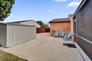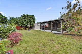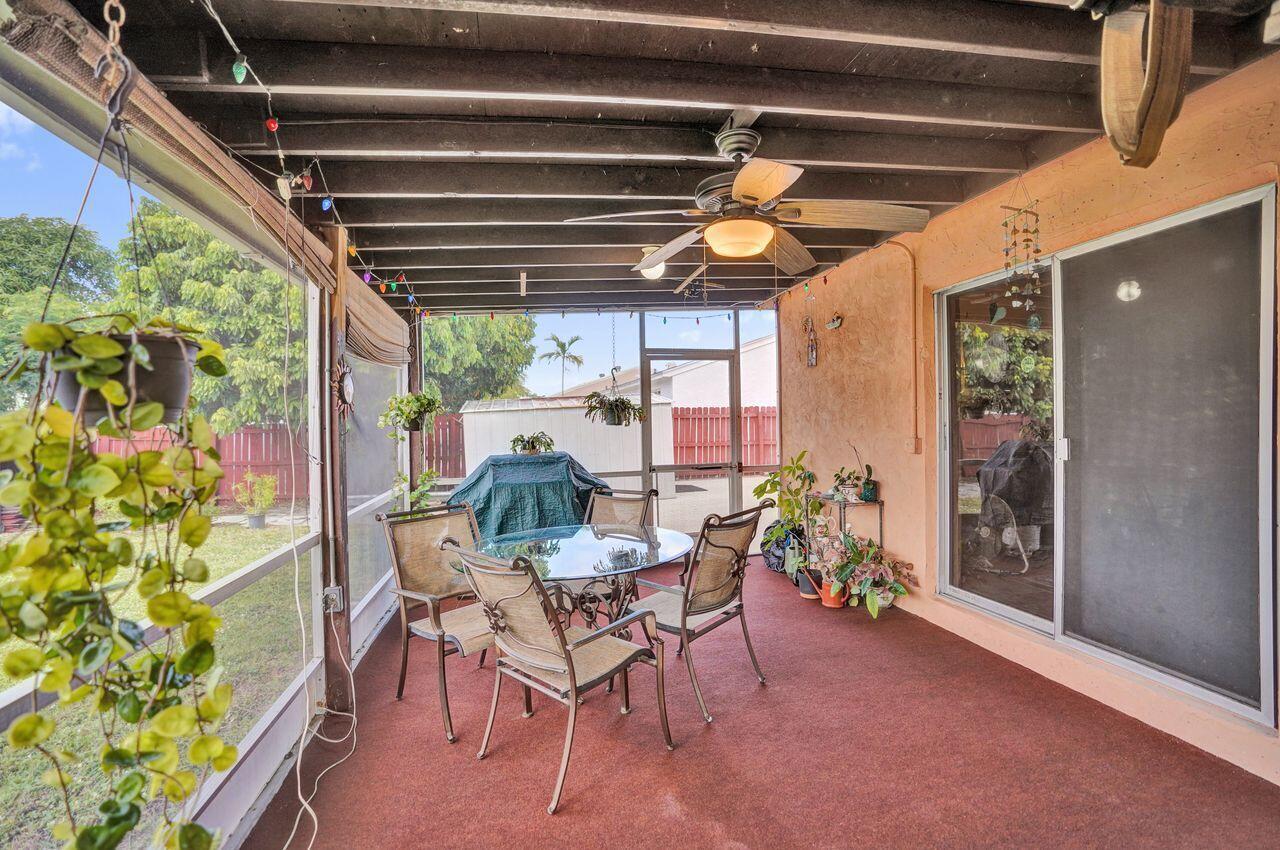 Spacious 3-bedroom, 2 bath, 1 car garage, corner lot home has an expansive fenced in & private backyard. The granite countertops, upscale appliances, tile backsplash and gas stove are highlights of this awesome kitchen. Enjoy beautiful wood finish upgrades throughout the home. The living area of the home flows easily from room to room and leads to an undercover screened-in patio that's great for relaxation or entertaining guests. Some of the home's additional features include: a split bedroom floor plan, large utility room, an extended driveway, a multi-purpose RV or patio pad, storage shed, new GE circuit breaker box and much more. At price, this Non-HOA, move-in-ready home comes with a 1-year American Home Shield home warranty. The home is nestled between a spacious green area andEmpire Public Park. Conveniently located near shopping, schools, and everything the Palm Beaches has to offer.