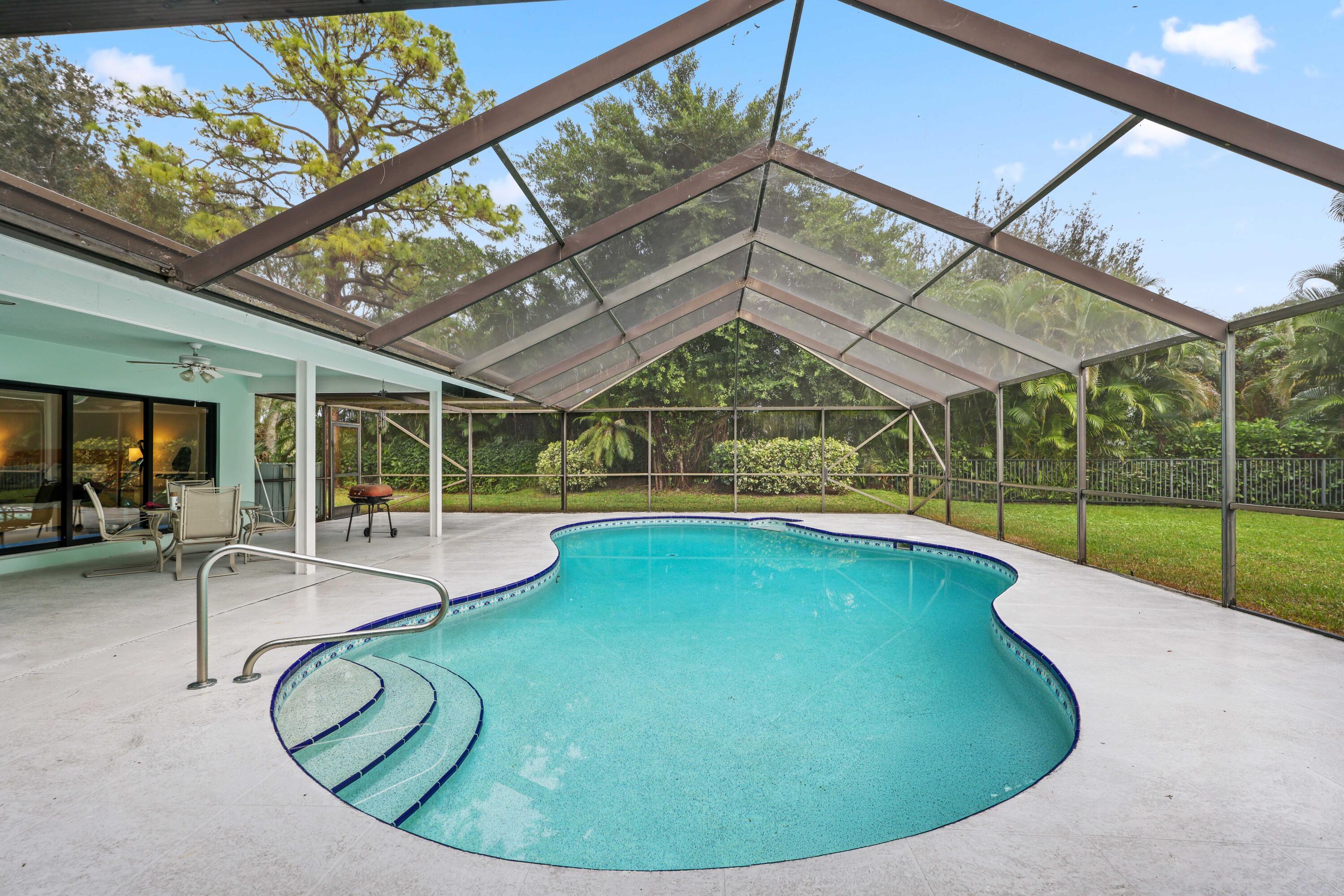 Inviting 3-bedroom, 3-bath CBS home on a spacious .57-acre corner lot in Whispering Trails, offering the layout and room so many want in Jupiter. The split design adds privacy between the large primary suite and guest rooms, and the generous family room features a fireplace that instantly feels like the heart of the home. The kitchen and living areas connect easily with views out to the wide covered patio and screened pool. The extended driveway and four-car garage provide excellent parking and storage. Weekends are simple here with easy access to Jupiter beaches and parks, Riverbend Park, golf, and popular dining. Spend your free time visiting the Jupiter Inlet Lighthouse and local spots such as Guanabanas, U-Tiki, and Harbourside Place. Low HOA fees make this home even more appealing.Whispering Trails is one of Jupiter's most sought-after areas for those who want larger lots, winding streets, and a peaceful setting surrounded by long-standing trees. Its location keeps you close to everything that makes Jupiter special while giving you the room and privacy rarely found so close to town. Outdoor lovers enjoy being only minutes from Riverbend Park, known for biking, hiking, and paddling along the Loxahatchee River. Jupiter's beaches, the lighthouse, and waterfront spots add even more ways to enjoy the area. Dining favorites such as Guanabanas, U-Tiki, Lucky Shuck, Jetty's, and Food Shack are all within a short drive, making nights out simple and fun. This home offers the space, setting, and location that continually make Jupiter one of South Florida's most desired places to call home. There is a newer a/c and water heater too.