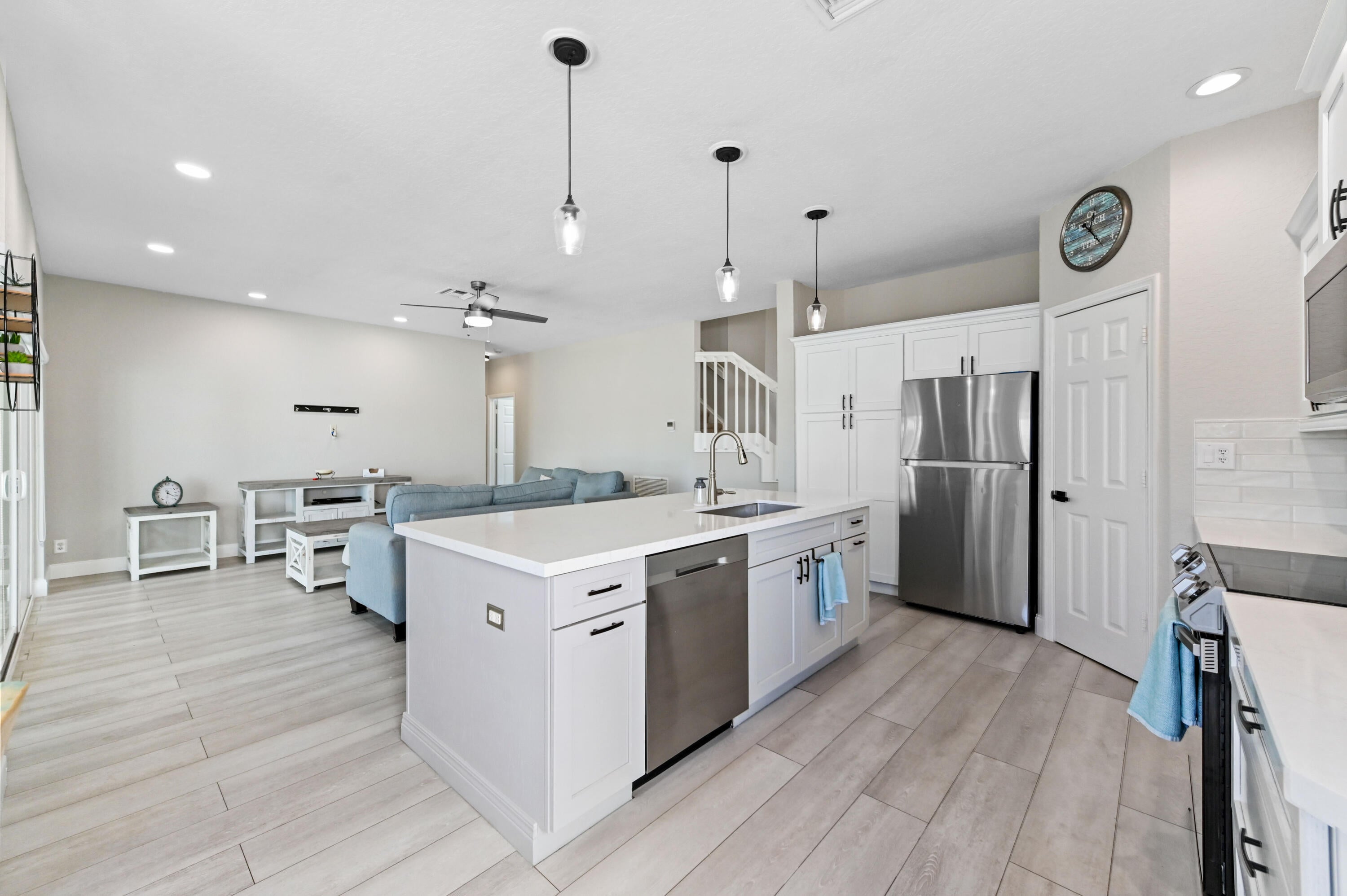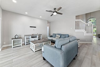 Prepare to be absolutely captivated by this gorgeous, upgraded lakefront pool home, perfectly situated within the highly sought-after Lake Charleston community and its excellent school zone! This residence combines spacious, sun-drenched living with worry-free modern upgrades. Step inside to soaring ceilings and an abundance of natural light, showcasing the desirable new flooring installed on the main level in 2022. Cable & internet services are included in the communities low HOA fees!The inviting, open-concept kitchen is a chef's dream, featuring pristine white shaker cabinetry and elegant quartz counters. It boasts a full suite of stainless steel appliances updated in 2022, seamlessly connecting to the spacious family room. This area provides direct access to the outdoor oasis via a hurricane-grade slider door installed in 2024. All bedrooms are generously sized with ample closet space, including a luxurious Master Suite that features a 2 large walk-in closets and a spa-like ensuite bathroom with a separate shower, relaxing tub, and dual sinks. Experience the ultimate Florida lifestyle on your lovely screened patio, overlooking a serene pool and tranquil lake views. The home is fortified by a new roof installed in 2023, and the laundry room was completely renovated in 2024, adding utility and value. With a dedicated laundry room and garage access, this meticulously maintained, updated home offers prestige, privacy, and unbeatable amenities in West Lake Worth.